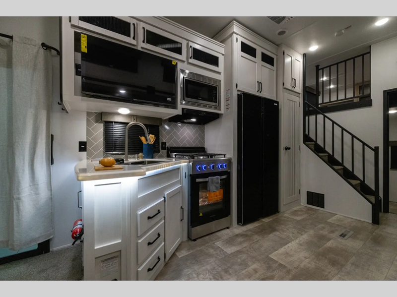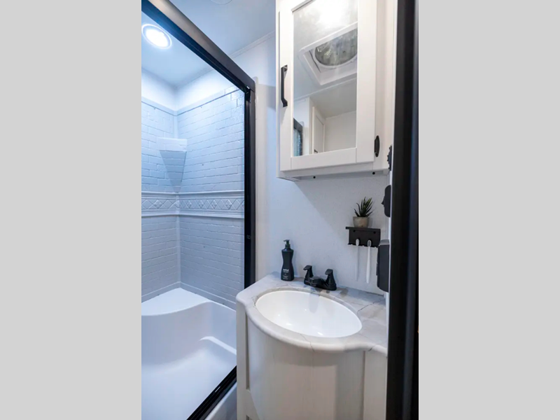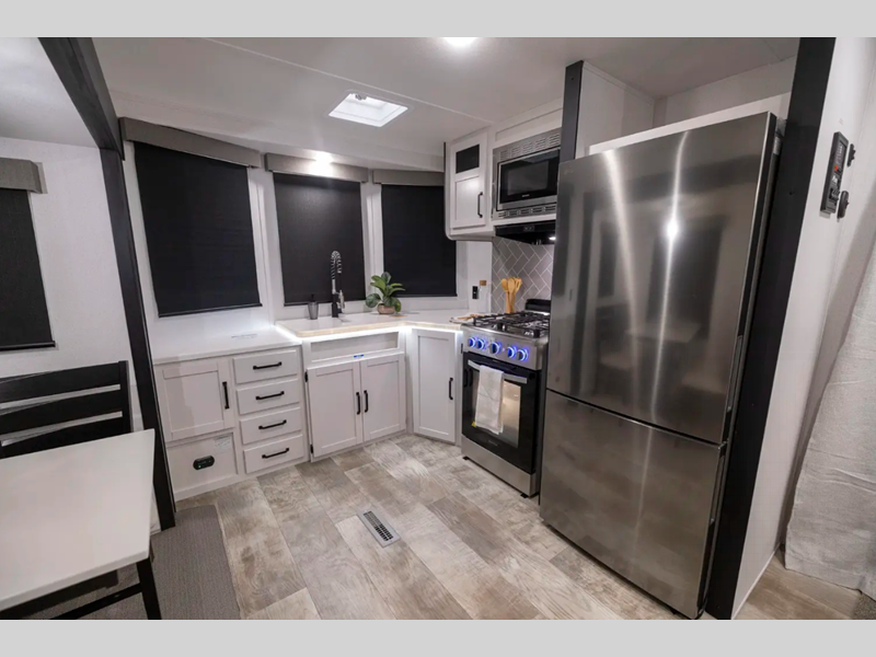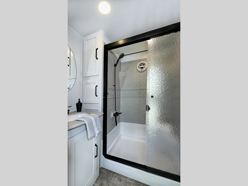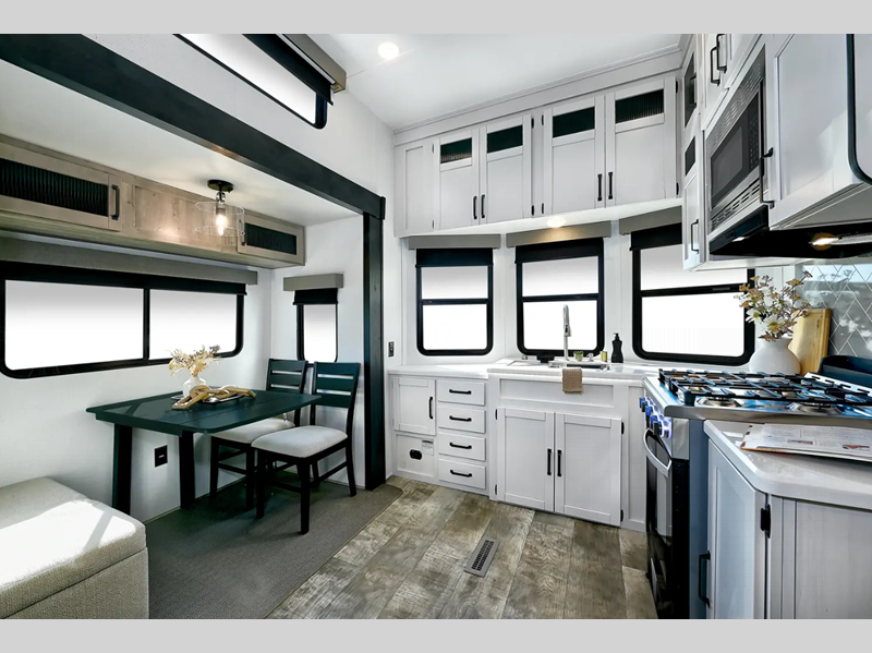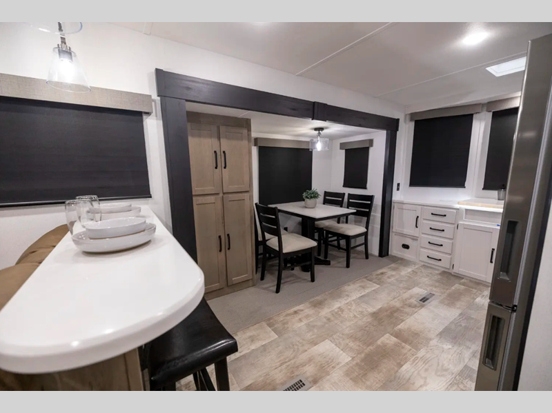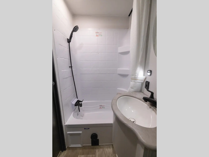 The Congoleum flooring inside is not only eye-catching, but also resilient and durable to withstand your adventrous lifestyle. You will find comfortable seating and sleeping spaces, ample storage solutions for your belongings, plus full bath and kitchen amenities to make each journey hassle-free.