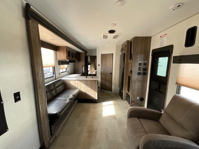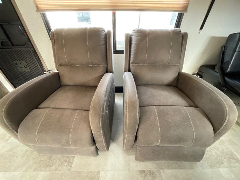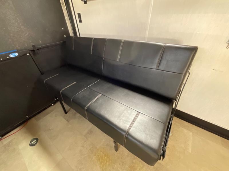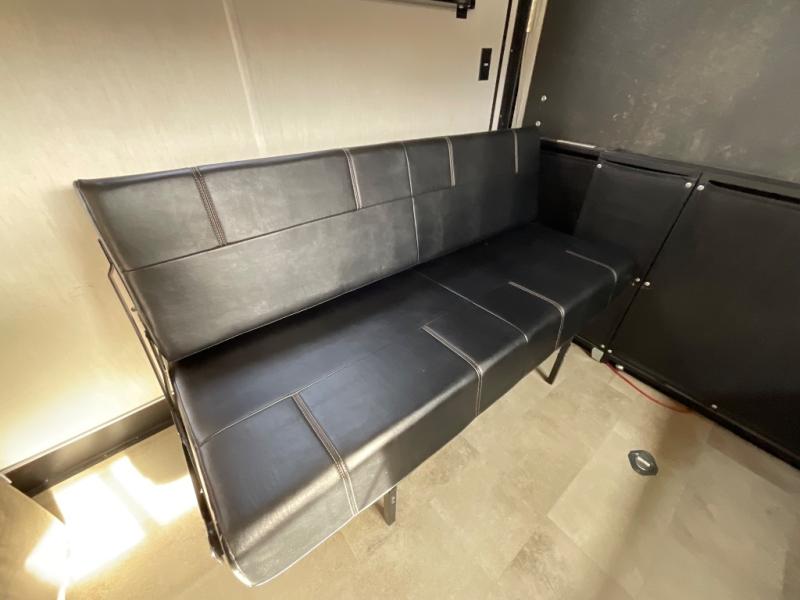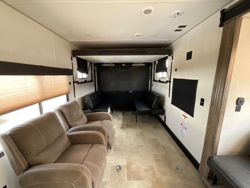 Bring along your kayaks, dirt bikes, or even a side-by-side in this toy hauler. There is 15' 10" total garage space, and a ramp door for easy unloading. Once your toys are out, enjoy lunch at the roll-over sofas, or let your guests rest on the quick set queen bed system before heading out. There is a dual entry bath to clean up in each day, and the Rogue king bed is sure to bring sweet dreams. In the morning, prepare eggs and bacon on the three burner cooktop, and the milk can go back in the 10.1 cu. ft. residential refrigerator. This model also includes a flip-up sofa for more seating and sleeping space, and you can add the optional lounge chairs too!