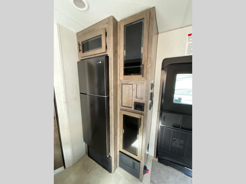 The Vengeance Rogue by Forest River is a budget-friendly toy hauler that you can really get on board with! Some of the features within the Rogue Platinum Package are the zebra shades that will keep light out, a glass shower enclosure, ultracold heated holding tank pads, and much more. There is an outside shower with hot and cold water so you can fill the dogs water bowl or wash the mud from your riding gear, and the enclosed underbelly will allow you to extend your camping season. You will love the look of the residential black stainless steel farm sink, along with the seamless countertops and LED interior lighting with accents.