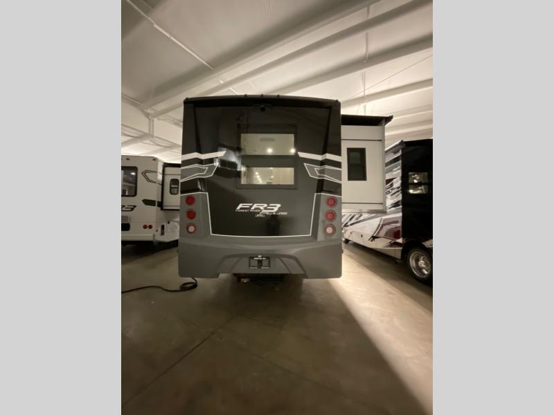 With each FR3 Class A gas motorhome by Forest River, you will find an easy-to-drive coach with a spacious interior allowing you to gather with friends and family with convenience and style found throughout! Each is built with vacuum-bonded construction, a one-piece fiberglass roof with extended rain spouts, a steel firewall and A-pillar extension, Bi-LED headlamps and lower LED fog lights, and grey Rotocast storage boxes with drains. Inside, you will enjoy black hardware, appliances, plumbing fixtures, and a glass shower door frame. You will also find a stainless steel kitchen sink with a bamboo cutting board and roll-up dryer, heavy-duty full-extension ball bearing drawer guides, dual-access dinette storage with doors, and nightstands with charging stations to keep your cellphones ready for whatever is next. Make your selection today!