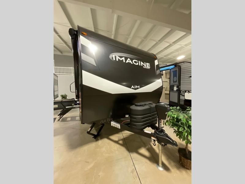 Aim for new destinations in one of these Grand Design Imagine AIM travel trailers! They are constructed to a superior standard with the 4-Seasons Protection Package that features a heated and enclosed underbelly with suspended tanks, a moisture barrier floor enclosure, a double insulated roof and front wall, and more. There is backup camera prep outside, along with a universal docking station, a power tongue jack, and durable Tuff-Ply pass-thru flooring for your camp gear. You are sure to feel at home with residential cabinetry, premium window treatments, residential countertops, and a spacious walk-in shower to name a few comforts. The on-demand tankless water heater is a feature you won't want to camp without and the hi-definition LED TV will ensure you'll never go bored on rainy days. Each model also comes with four AIM packages; the Peace of Mind Package, The Ultimate Power Package, The 4-Season Protection Package, and the Solar Package!
