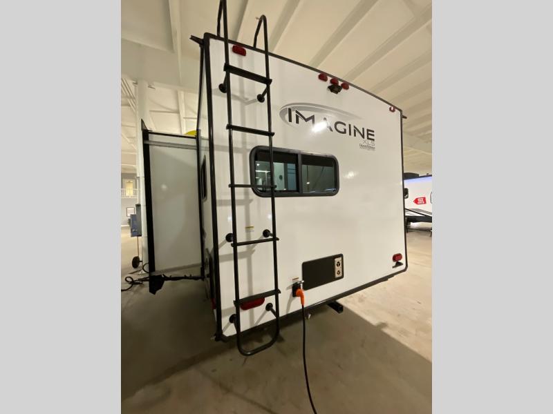 Let your imagination run wild with the possibilities that the Grand Design Imagine XLS travel trailer can provide! The Imagine XLS has been built with oversized tank capacities, an extra-large 2" fresh water drain valve, a ducted A/C system, a power tongue jack, and a heated and enclosed underbelly with suspended tanks. There is a designated heat duct to the subfloor and a residential ductless heating system throughout. For outdoor adventures, the electric awning with LED lights will enable you to stay protected, and the exterior speakers make any time outside a party. You will also love the XLS Solar Package that comes with a 165W roof mounted solar panel, a 40 Amp charge controller, a 12V 10 cu. ft. refrigerator, and roof mounted quick connect plugs!