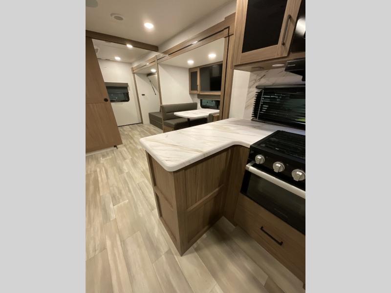Form and function works together with every one of these Alliance RV Delta travel trailers! They are built with a walk-on roof with a seamless PVC roof covering, Mylar reinforced exterior seals, and a heated and enclosed underbelly to protect your unit in all seasons. The commercial grade vinyl flooring will be easy to clean and the oversized atrium windows throughout let in plenty of natural sunlight. With 62 cu. ft. of drop frame pass-through storage, you can bring along all of your essential camping gear plus it has USB charging for more convenience. There are many at home interior conveniences including a Bluetooth speaker, USB charging throughout, and even a pull-out kitchen trash can. Come find your favorite model today!
