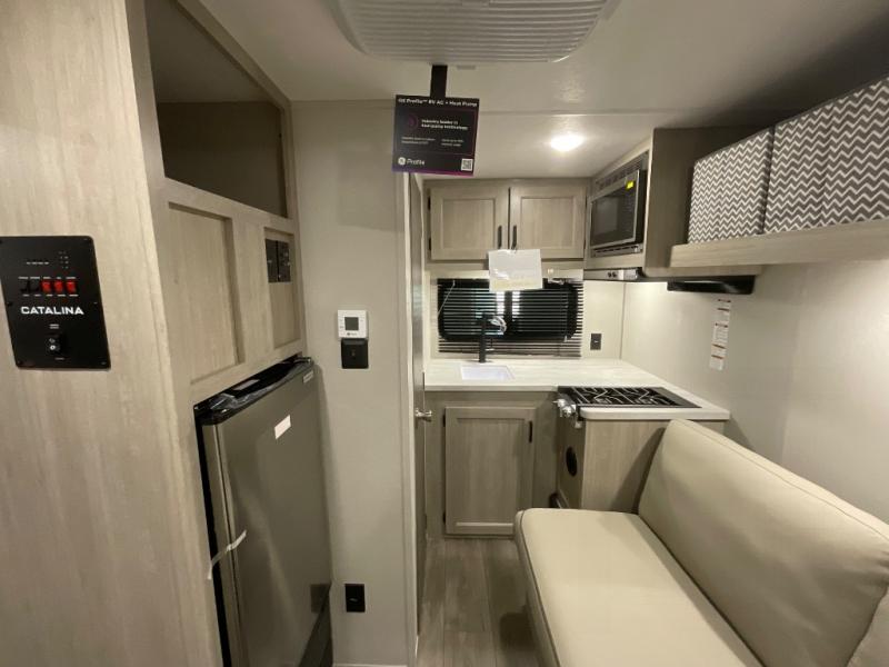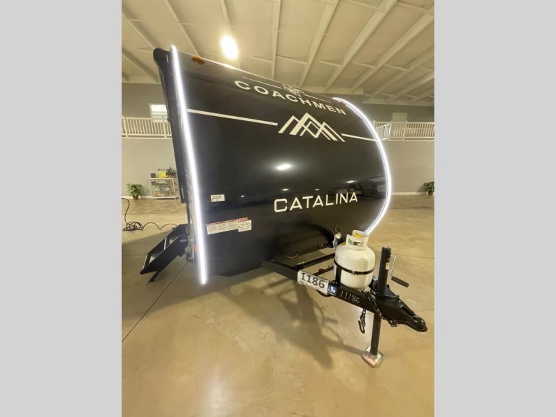 With any Catalina Summit Series 7' by Coachmen RV, you can create an easier adventure with the versatility and simplicity of the shorter lengths and lighter weights! Each includes a premium exterior graphics package, a smooth HD aluminum radius front, and EZ lube axles with leaf spring suspension. The exterior offers a heavy duty standard tongue jack, a diamond plate rock guard to protect against road debris, exterior RG-6 coax cabling and satellite prep, rear view camera prep, and flush mount baggage doors with radius corners for your outdoor gear. Inside, you will enjoy a premium JBL interior speaker, USB charging ports, seamless Thermofoil countertops throughout, a deep basin farm style sink for easy cleanup, and GE kitchen appliances. It's time to choose an affordable and maneuverable single axle trailer today!