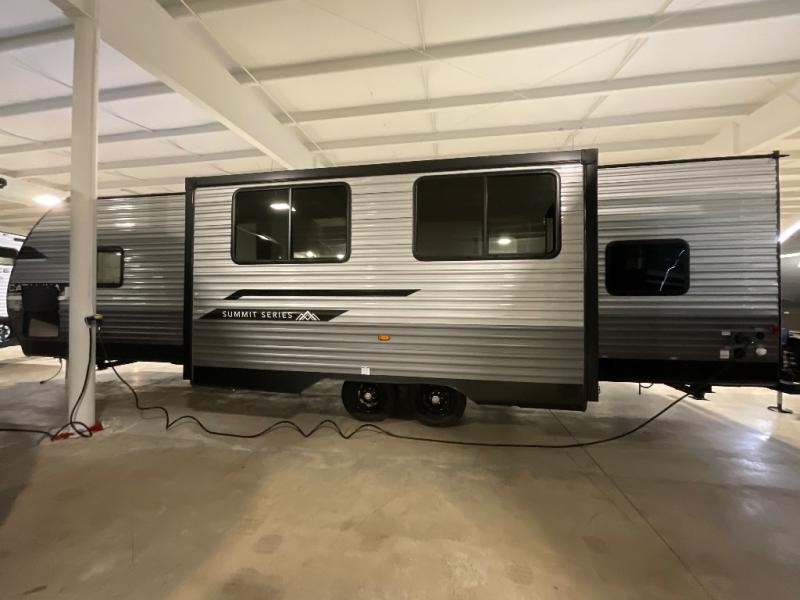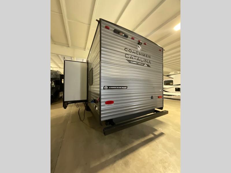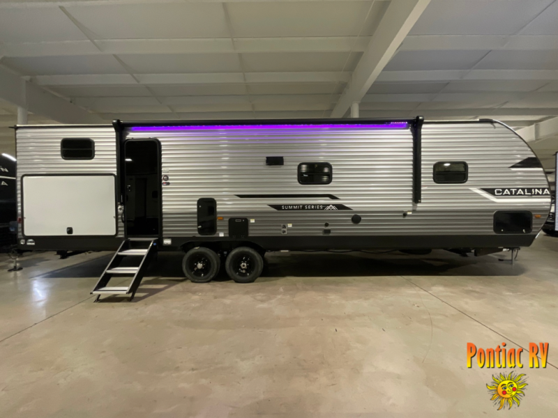 With any Catalina Summit Series 8 by Coachmen you will enjoy an affordable travel trailer packed with at-home comforts! The solid construction includes a Norco electromagnetic powder coated chassis, a seamless Alpha roof membrane, and full length frame outriggers for maximum support and durability. EZ lube axles with leaf spring suspension and self adjusting brakes provide smooth towing from home to campground, and the premium exterior graphics package is sure to turn heads as you travel down the highway. You will love the features included, such as a JBL Aura Cube media center, magnetic baggage door latches, 4,000 lumen interior touch lighting, and the list goes on!