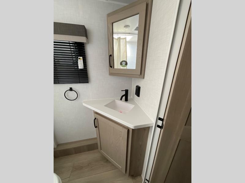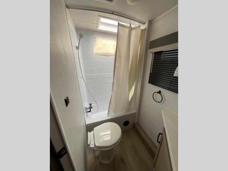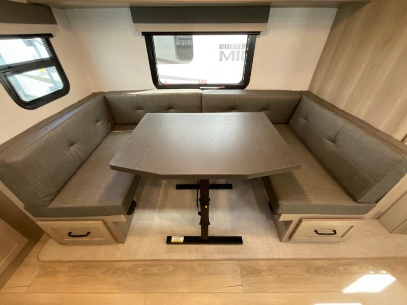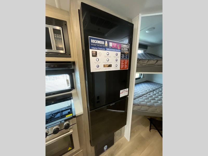 Each Rockwood Mini Lite travel trailer by Forest River is constructed with a fully laminated one-piece walkable roof, sleek frameless windows, and a six-sided full aluminum frame for strength and durability. The 12V thermostatically controlled heated tanks, plus radiant foil in the underbelly and slide out floors will allow you to camp well into the colder months, and the 200W roof solar panel will be perfect for a little off-gridding. Each model includes solid surface kitchen countertops, solid wood cabinet doors, night roller shades, plus many more interior features. Having an AIR 360+ omnidirectional antenna with WiFi prep on board gives you the option to get some work done if it's needed, and the power tongue jack provides hassle-free set up, so you can enjoy more time relaxing!
