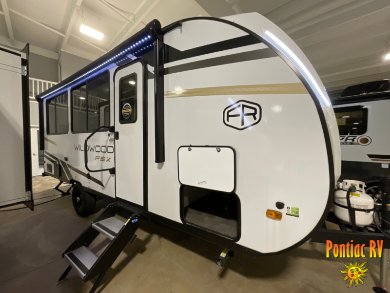 The Forest River Wildwood FSX travel trailer and toy haulers are easy to tow and easy to love, so come take a look! With each model you'll appreciate the 20K BTU furnace and A/C unit to keep you comfortable year around, and the large windows will make the whole unit seem bright and open. The EZ entrance includes an XL folding grab assist handle, and the power awning with LED lights provide an outdoor living space you are sure to love. The lightweight Wildwood FSX travel trailers and toy haulers are your ticket to the great outdoors. Choose yours today!