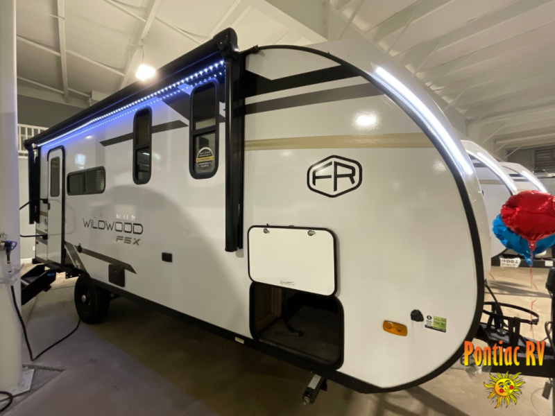 The Forest River Wildwood FSX travel trailer and toy haulers are easy to tow and easy to love, so come take a look! With each model you'll appreciate the 20K BTU furnace and 13,500 BTU A/C to keep you comfortable year around, and the large windows will make the whole unit seem bright and open. The EZ entrance includes an XL folding grab assist handle, and the power awning with LED lights provide an outdoor living space you are sure to love. The lightweight Wildwood FSX travel trailers and toy haulers are your ticket to the great outdoors. Choose yours today!