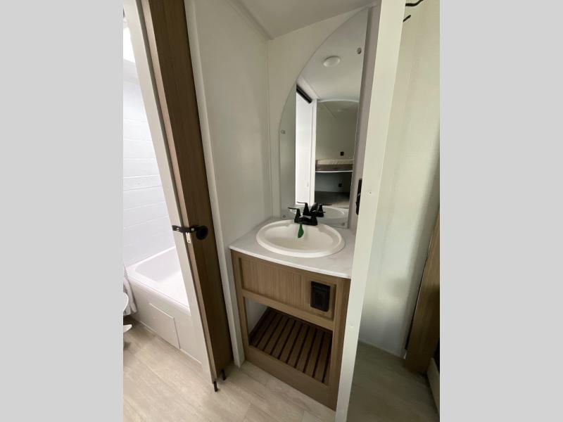 The Wildwood X-Lite travel trailers are packed with hassle-free camping amenities! There are a variety of floorplans to choose from between three different regions. The enclosed Accessibelly will help protect against the elements and debris during transport, and the exterior retro/metal redesign is sure to be eye-catching! There are stylish roller shades inside, along with updated backsplash, elegant curtain rods and curtains, plus many more interior comforts! Choose a Wildwood X-Lite travel trailer today for quality and value!