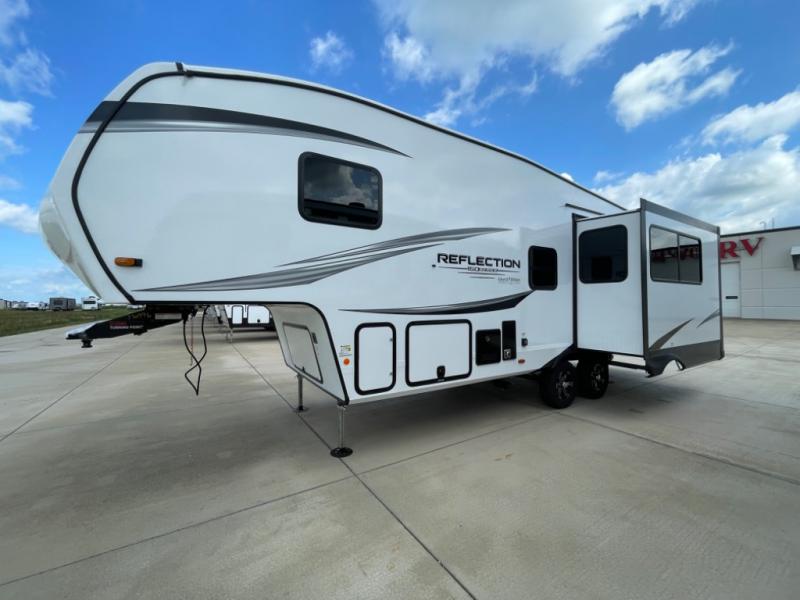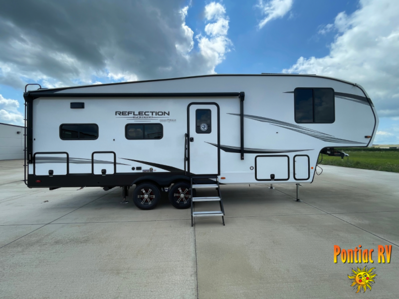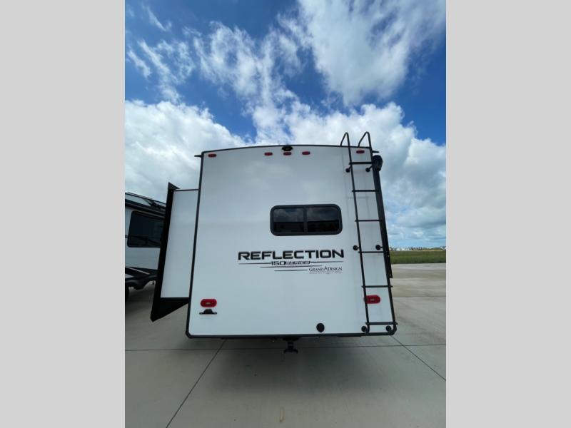 With any Reflection 150 Series fifth wheel by Grand Design, there is more available payload capacity and a broader range of half-ton trucks capable of towing this fifth wheel, and no slider hitch is needed thanks to the 90-degree turning radius which makes them short bed friendly and easier to tow. The mandatory Ultimate Power package provides a "One-Touch" automatic leveling system and a detachable power cord with LED light for easy setup, plus motion sensor pass-through lighting and entry lighting, and the Tire Linc TPMS will help you stay safe on the road. The interior offers residential luxury from the cabinetry and premium Congoleum flooring, to the booth dinette and residential-style window treatment. Make your refined decision today!