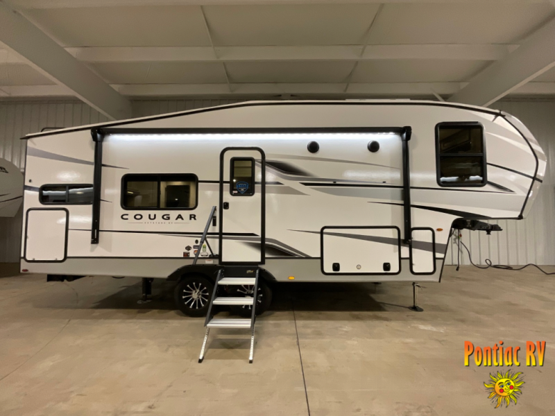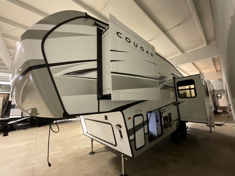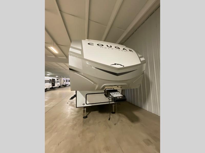 The Keystone Cougar Half-Ton fifth wheel and travel trailers are known as one of America's favorites for a reason! Some of those reasons are the exclusive features that come from Keystone, like the Winegard Air 360+ omni-directional rooftop antenna, the in-floor heating ducts, and the Hyper Deck flooring. The Cougar Half-Ton has a Climate Guard protection package to keep you safe during inclement weather, along with two roof attic vents, PEX plumbing and more. Use the 21" Furrion range with Piezo ignition to create all of those familiar meals from home, and enjoy endless hot showers with the Girard tankless on-demand water heater!