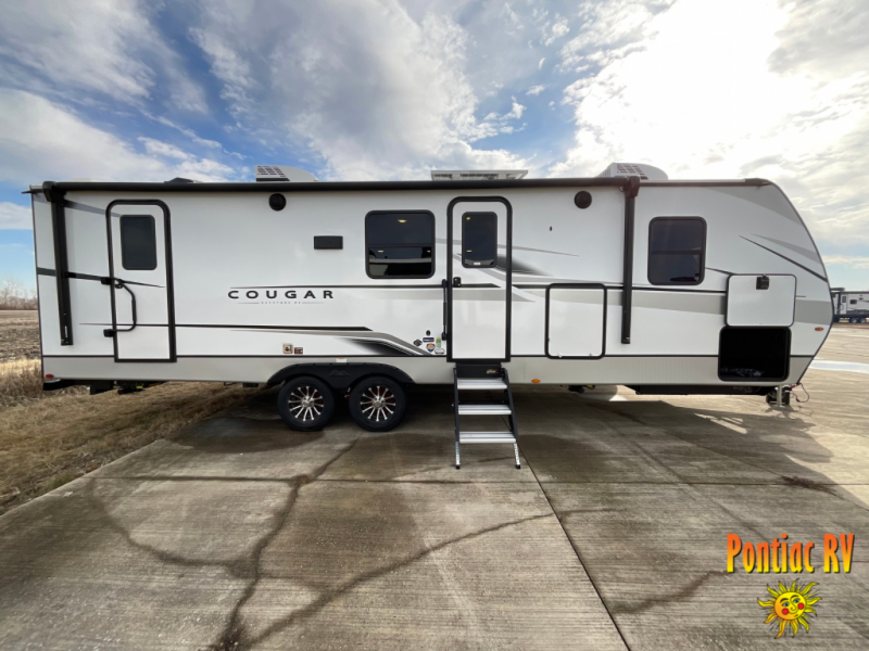 The Keystone Cougar Half-Ton fifth wheel and travel trailers are known as one of America's favorites for a reason! Some of those reasons are the exclusive features that come from Keystone, like the Winegard Air 360+ omni-directional rooftop antenna, the in-floor heating ducts, and the Hyper Deck flooring. The Cougar Half-Ton has a Climate Guard protection package to keep you safe during inclement weather, along with two roof attic vents, PEX plumbing and more. Use the 21" Furrion range with Piezo ignition to create all of those familiar meals from home, and enjoy endless hot showers with the Girard tankless on-demand water heater!