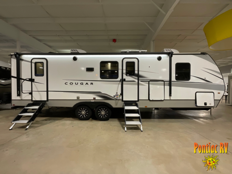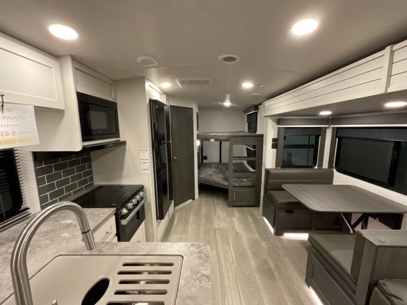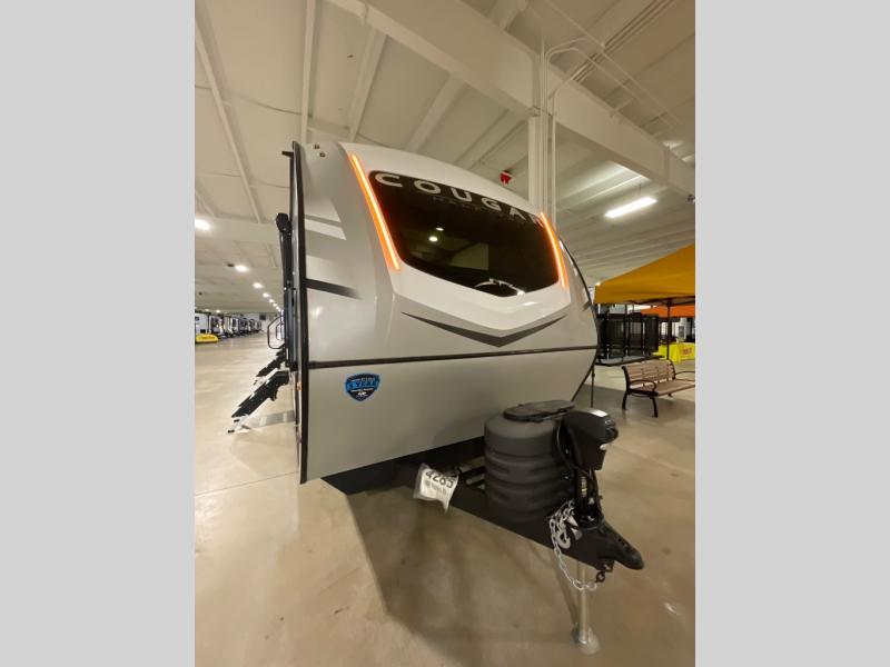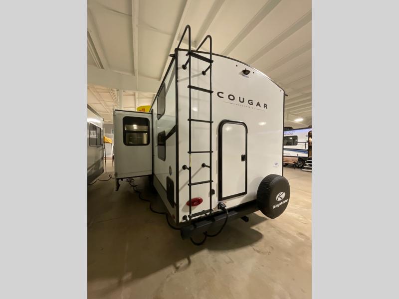 The Keystone Cougar Half-Ton fifth wheel and travel trailers are known as one of America's favorites for a reason! Some of those reasons are the exclusive features that come from Keystone, like the Winegard Air 360+ omni-directional rooftop antenna, the in-floor heating ducts, and the Hyper Deck flooring. The Cougar Half-Ton has a Climate Guard protection package to keep you safe during inclement weather, along with two roof attic vents, PEX plumbing and more. Use the 21" Furrion range with Piezo ignition to create all of those familiar meals from home, and enjoy endless hot showers with the Girard tankless on-demand water heater!