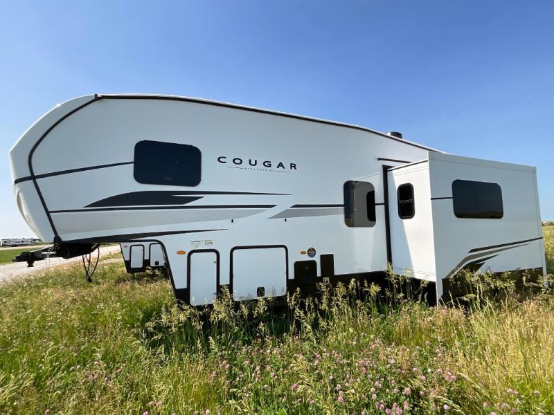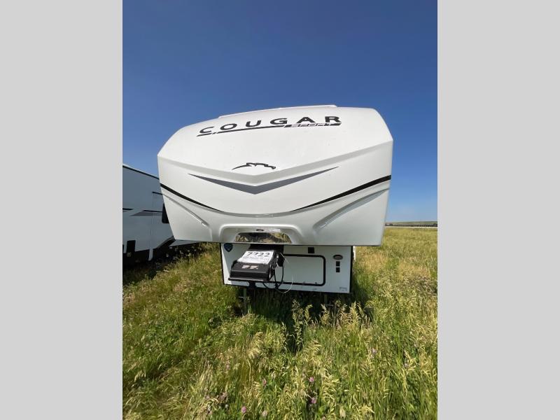 The Cougar Sport structural I-beam frame with stamped steel cross-members and outriggers, plus its laminated sidewalls with five-sided aluminum superstructure and Alpha Super Flex roof membrane are what active RVers love about the construction of the Cougar line. The Cougar Sport models are no exception when it comes to a great package, as well as being smaller and lighter weight than their big brother Cougar models. A one-piece, heated and enclosed polypropylene underbelly means a longer camping season. On the inside, residential shaker style hardwood cabinet doors and decorative crown molding, plus seamless pressed countertops and an on-demand water heater will make your unit feel even more like home. You are also sure to appreciate the shiplap style decorative accent wall behind the bed, a porcelain foot flush toilet in the bathroom, plus residential kitchen hardware, and so much more.
