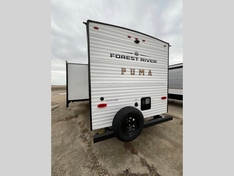 The Puma Camping Edition by Palomino offer an affordable travel trailer for rookie campers or seasoned RVers! They are built with 5/8" tongue and groove plywood flooring and a front diamond plate for added protection. There are also exterior clamp style door latches, back up camera prep, and 20 lb. LP bottles. Head inside to find Thermofoil countertops with a smooth drop edge, bedroom USB ports and outlets, and a GE appliance and kitchen package.