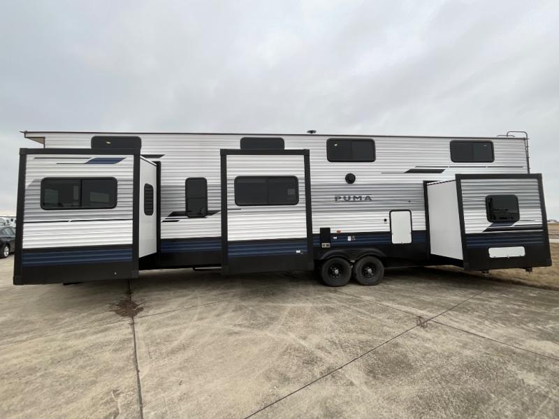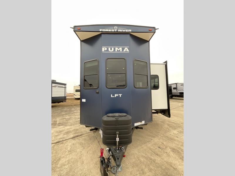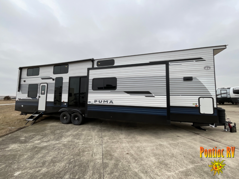 Each Puma Destination trailer by Palomino is designed to give you unforgettable getaways to the destination of your choice! The required Value Shopper Loft Package includes Congoleum designer linoleum, night roller shades, LED lighting, and a 24" stainless steel oven with a four burner stove so you can make meals just like you would at home. The tankless water heater is another feature you won't want to camp without, and there is WiFi prep, solar prep, plus optional washer and dryer prep for the option to further customize your trailer. An outside shower is included with the required Loft Package, along with two exterior speakers, solid surface countertops, four stabilizer jacks, and more!