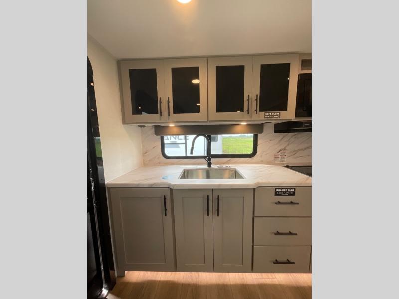 The Delta Ultra Lite travel trailers by Alliance RV are perfect for those looking for a lighter tow weight! The fully functional oversized atrium windows will let more natural light in, and the carpet free interior will be appreciated after a weekend at the lake. There are also magnet catches on all cabinets, soft close cabinet doors, and a kitchen toe kick with LED accent lighting. The exterior includes multiple temperature controlled spray ports, exterior awning controls, and Goodyear Endurance tires. Start a new adventure today in a Delta Ultra Lite travel trailer!
