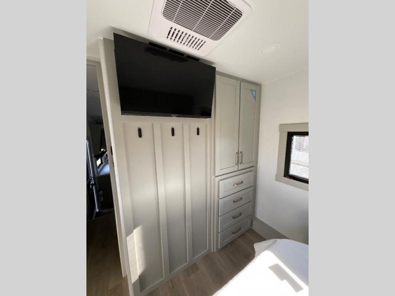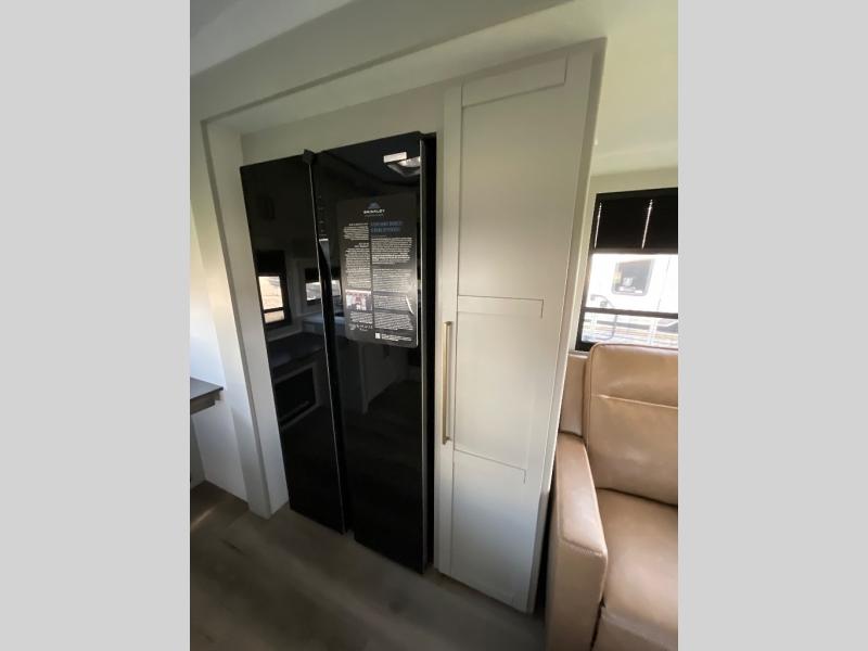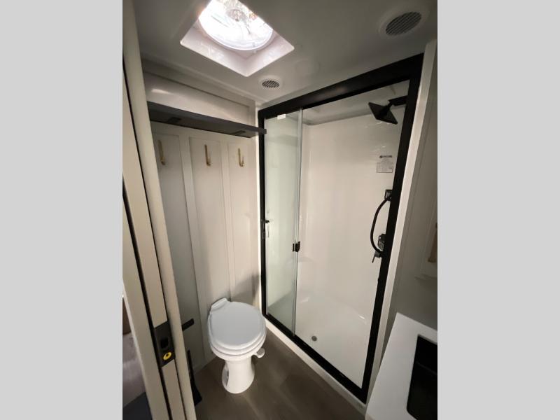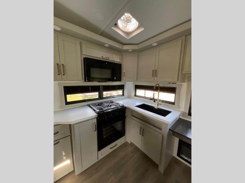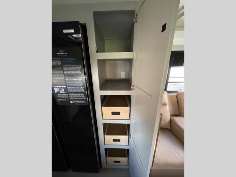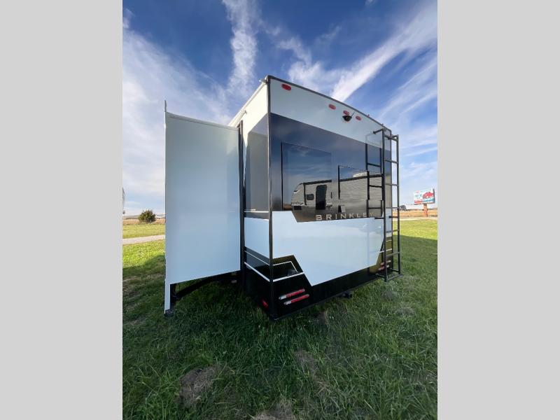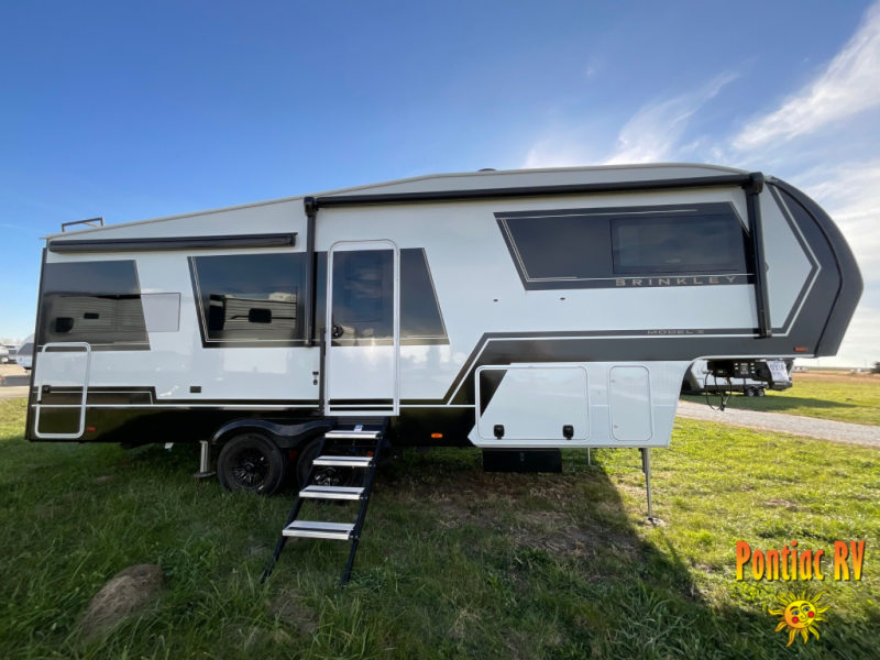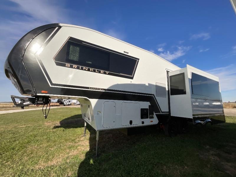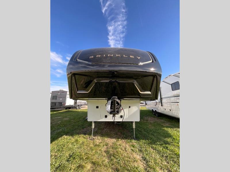 The Brinkley mid-profile Model Z fifth wheels bring you clean lines and an upscale look with plenty of style and exciting new features like the industry first brass plumbing connections. These units also feature an automotive grade front cap, plenty of exterior storage, dual exterior hot and cold showers, and wide stance leveling jacks for easy set up. Residential frameless windows provide a clean look and beautiful views, and ample electrical outlets and USB/USB-C outlets allow all of your electronics and appliances to easily be used and charged.