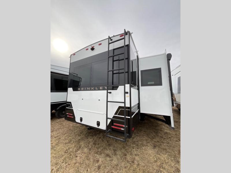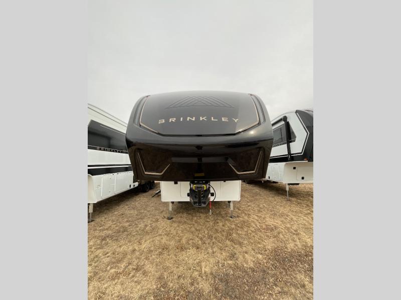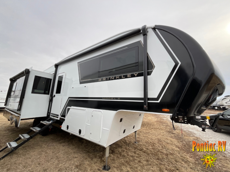 The Brinkley mid-profile Model Z fifth wheels bring you clean lines and an upscale look with plenty of style and exciting new features like the industry first brass plumbing connections. These units also feature an automotive grade front cap, plenty of exterior storage, dual exterior hot and cold showers, and wide stance leveling jacks for easy set up. Residential frameless windows provide a clean look and beautiful views, and ample electrical outlets and USB/USB-C outlets allow all of your electronics and appliances to easily be used and charged.