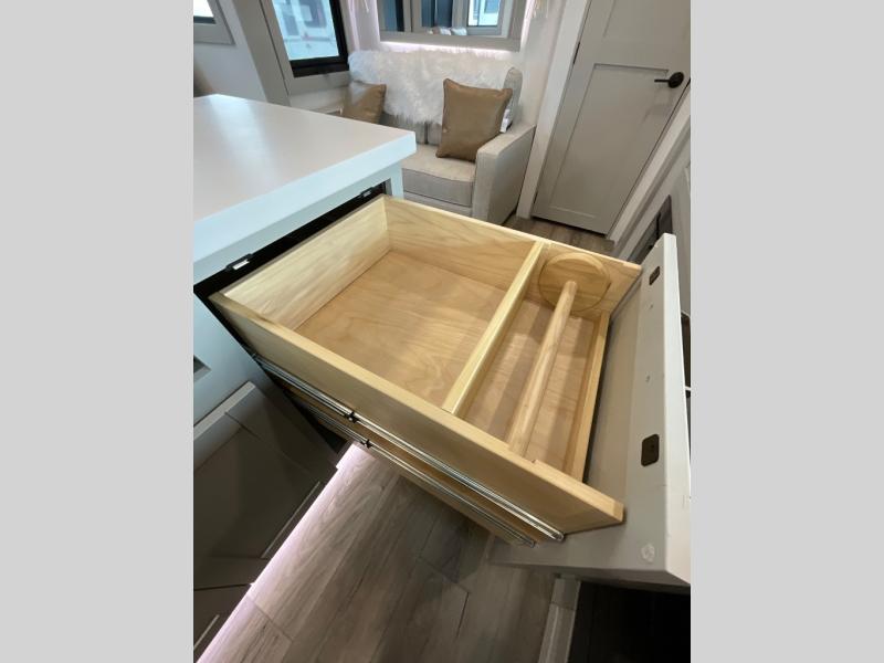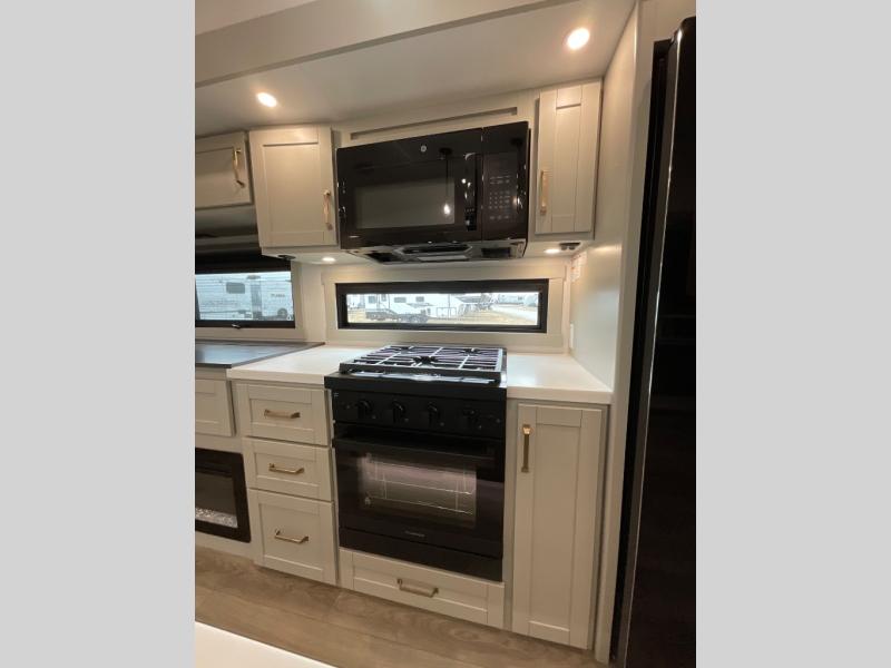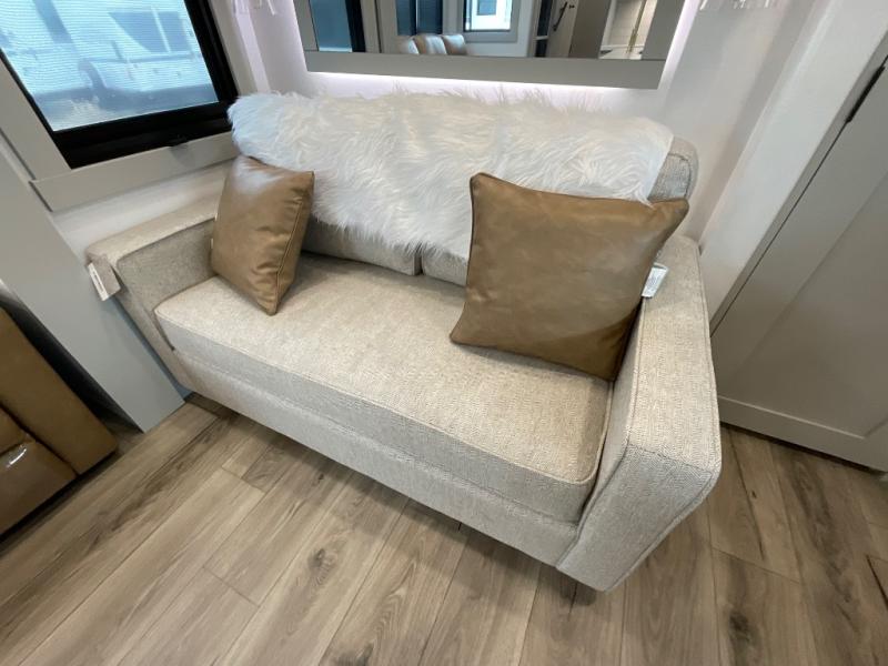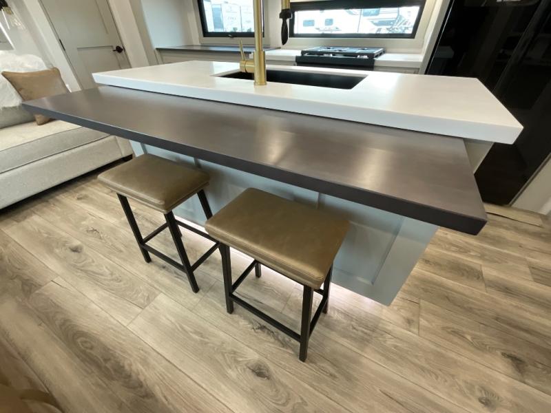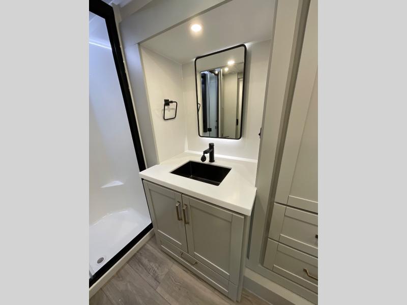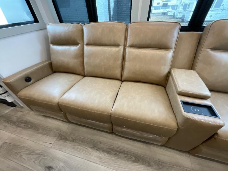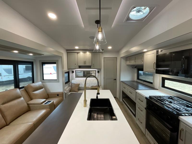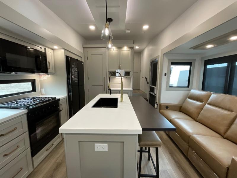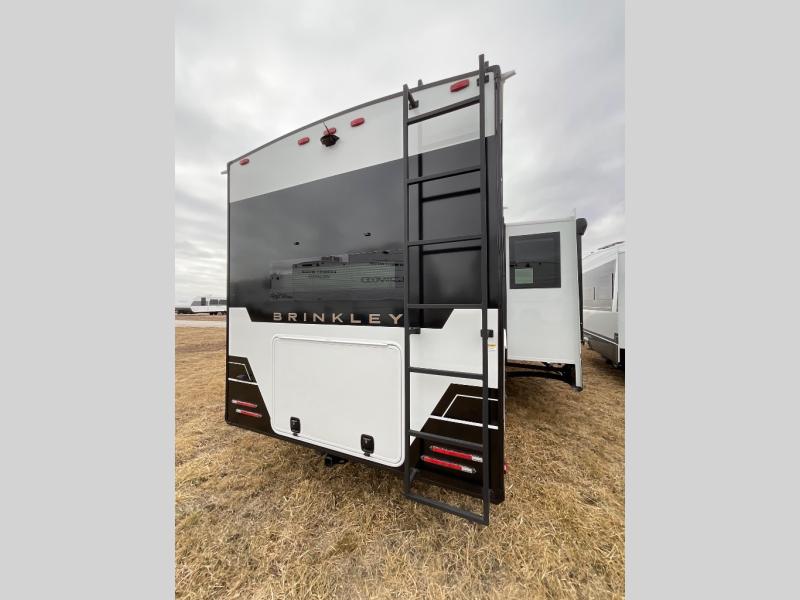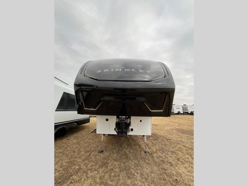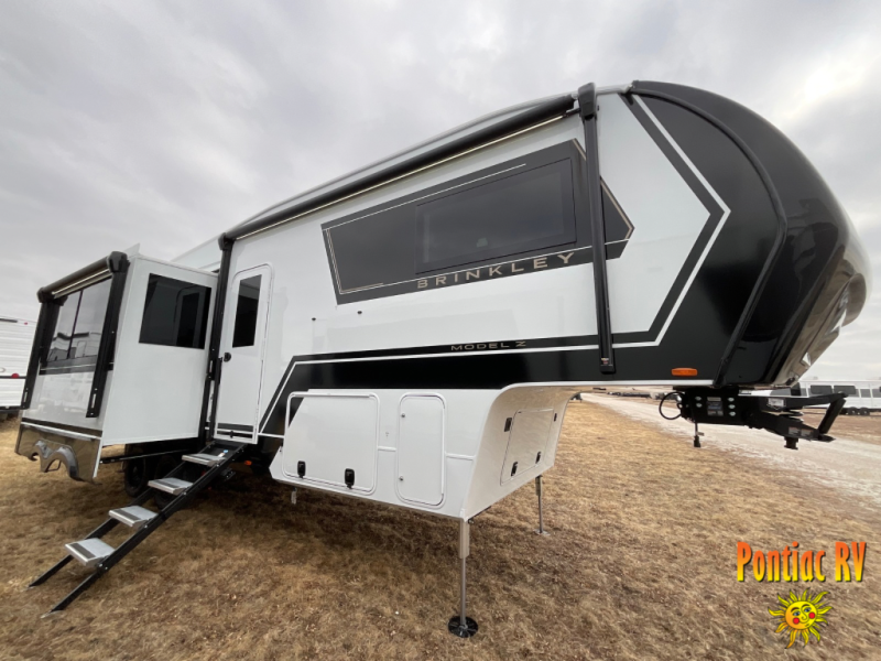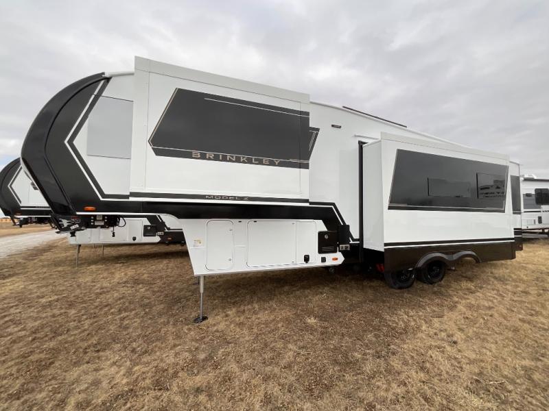The Brinkley mid-profile Model Z fifth wheels bring you clean lines and an upscale look with plenty of style and exciting new features like the industry first brass plumbing connections. These units also feature an automotive grade front cap, plenty of exterior storage, exterior hot and cold showers, and wide stance leveling jacks for easy set up. Residential frameless windows provide a clean look and beautiful views, and ample electrical outlets and 6 USB/USB-C outlets allow all of your electronics and appliances to easily be used and charged.