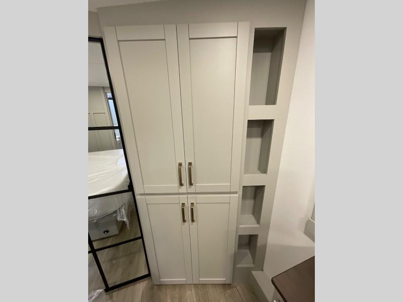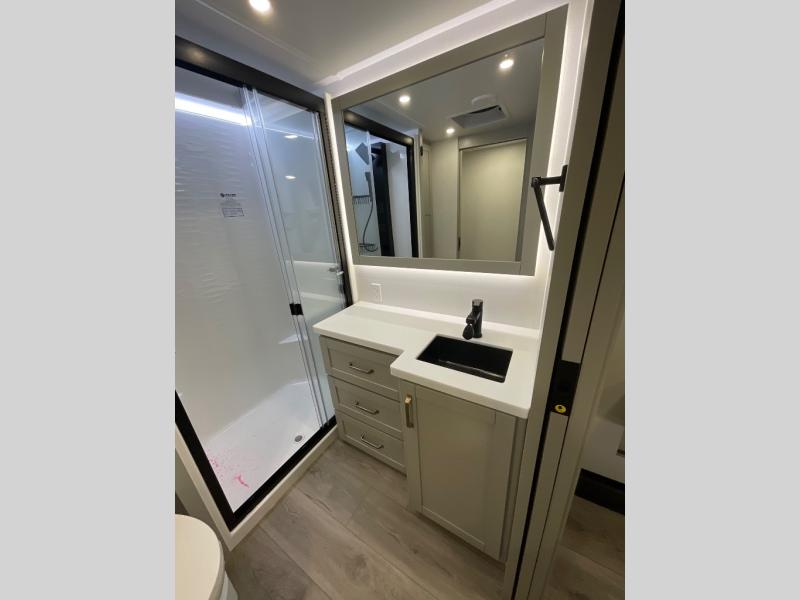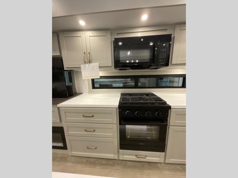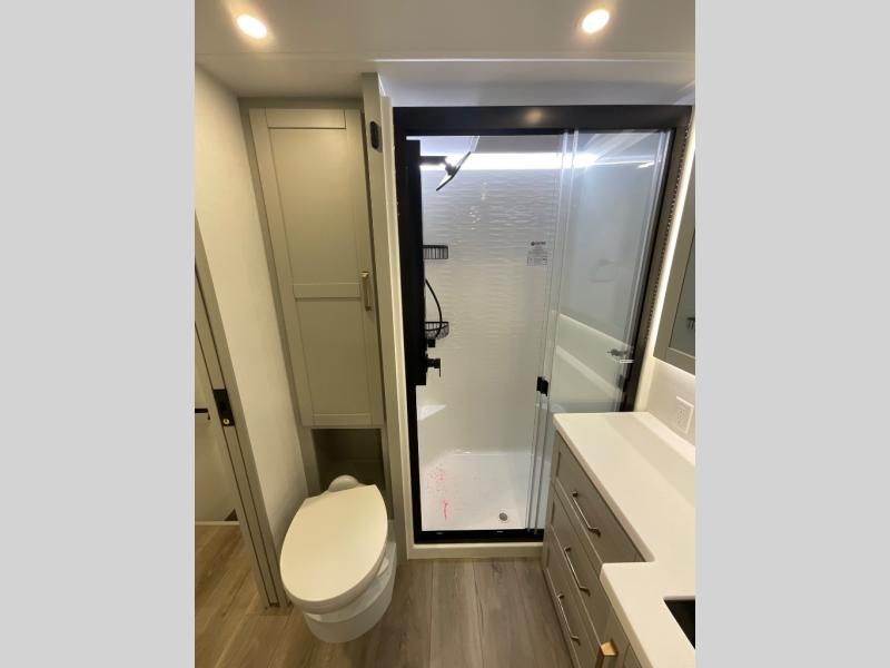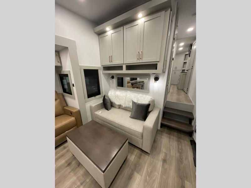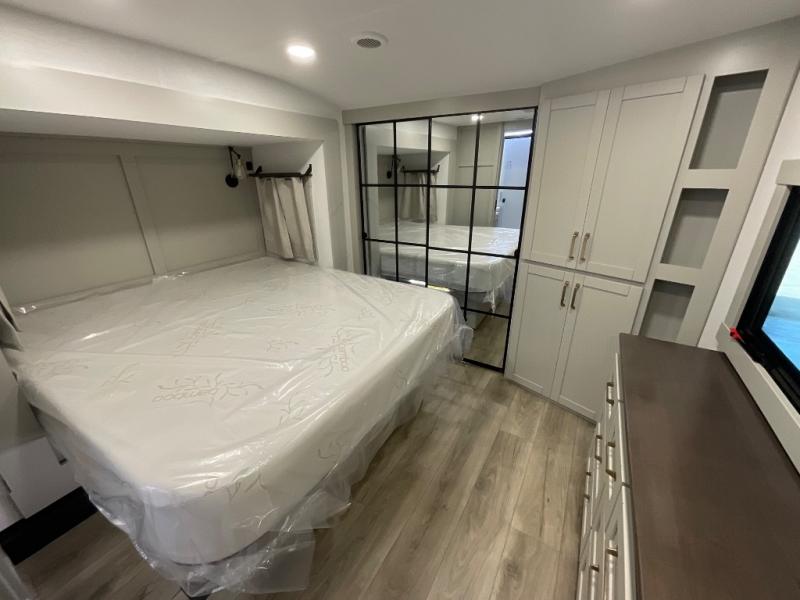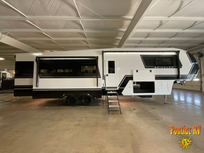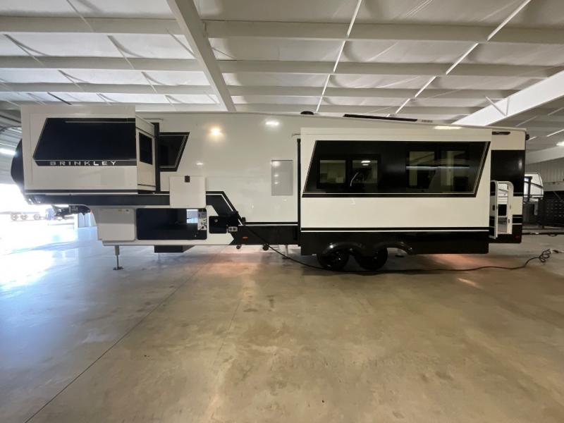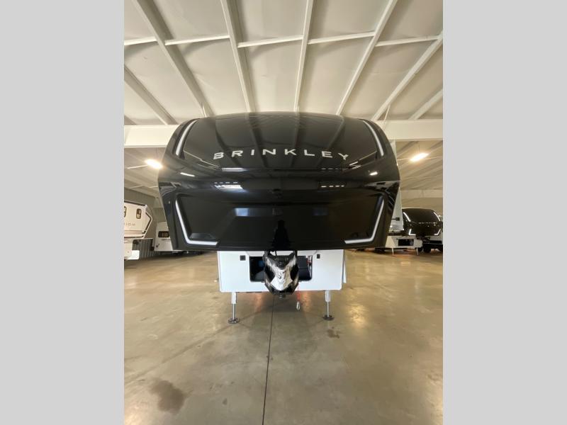 The Brinkley mid-profile Model Z fifth wheels bring you clean lines and an upscale look with plenty of style and exciting new features like the industry first brass plumbing connections. These units also feature an automotive grade front cap, plenty of exterior storage, exterior hot and cold showers, and wide stance leveling jacks for easy set up. Residential frameless windows provide a clean look and beautiful views, and ample electrical outlets and 6 USB/USB-C outlets allow all of your electronics and appliances to easily be used and charged.