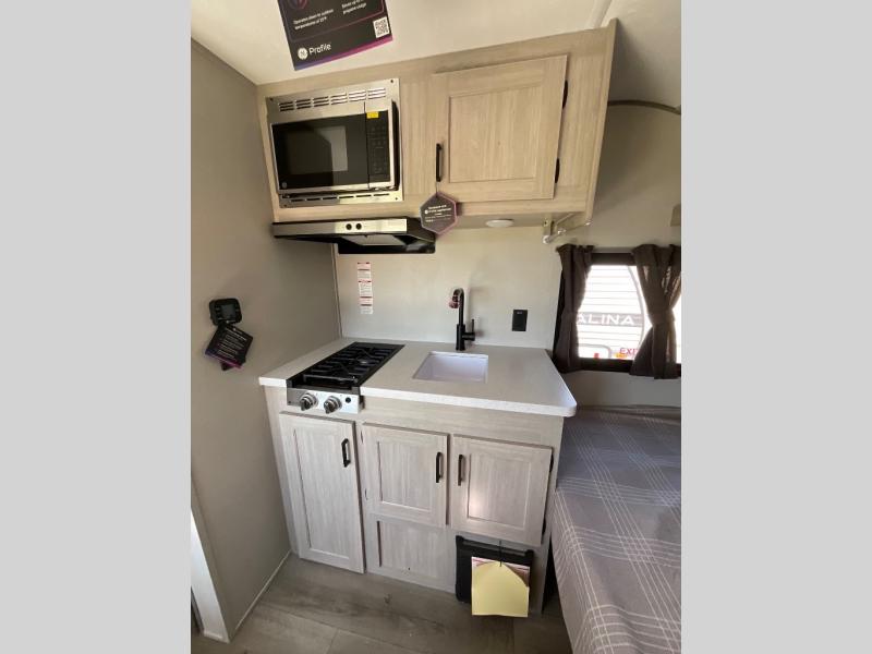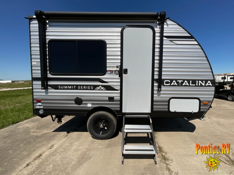 With any Catalina Summit Series 7' by Coachmen RV, you can create an easier adventure with the versatility and simplicity of the shorter lengths and lighter weights! Each includes a premium exterior graphics package, a smooth HD aluminum radius front, and EZ lube axles with leaf spring suspension. The exterior offers a heavy duty standard tongue jack, a diamond plate rock guard to protect against road debris, exterior RG-6 coax cabling and satellite prep, rear view camera prep, and flush mount baggage doors with radius corners for your outdoor gear. Inside, you will enjoy a premium JBL interior speaker, USB charging ports, seamless Thermofoil countertops throughout, a deep basin farm style sink for easy cleanup, and GE kitchen appliances. It's time to choose an affordable and maneuverable single axle trailer today!