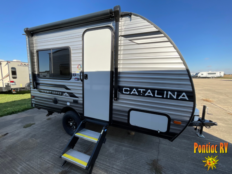 With any Catalina Summit Series 7' by Coachmen RV, you can create an easier adventure with the versatility and simplicity of the shorter lengths and lighter weights! Each includes a premium exterior graphics package, a smooth HD aluminum radius front, and EZ lube axles with leaf spring suspension. The exterior offers a heavy duty standard tongue jack, a diamond plate rock guard to protect against road debris, exterior RG-6 coax cabling and satellite prep, rear view camera prep, and flush mount baggage doors with radius corners for your outdoor gear. Inside, you will enjoy a premium JBL interior speaker, USB charging ports, seamless Thermofoil countertops throughout, a deep basin farm style sink for easy cleanup, and GE kitchen appliances. It's time to choose an affordable and maneuverable single axle trailer today!