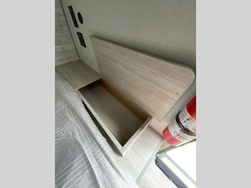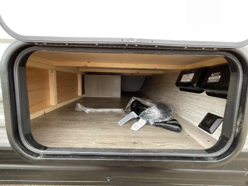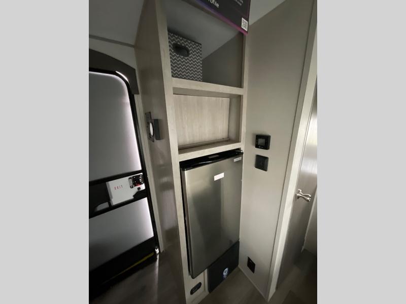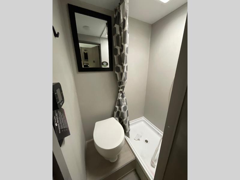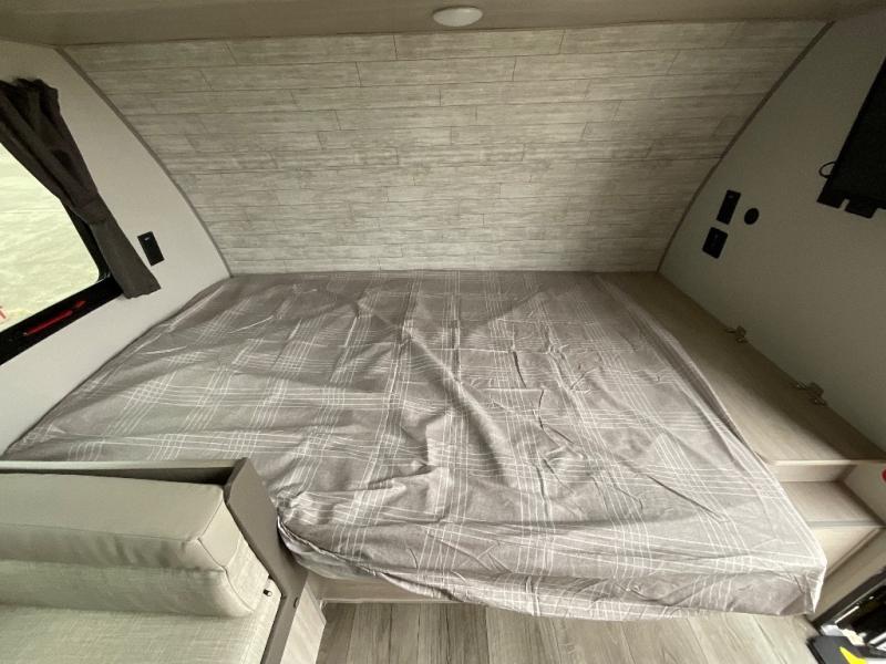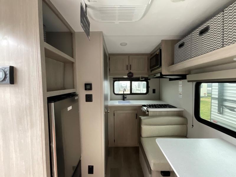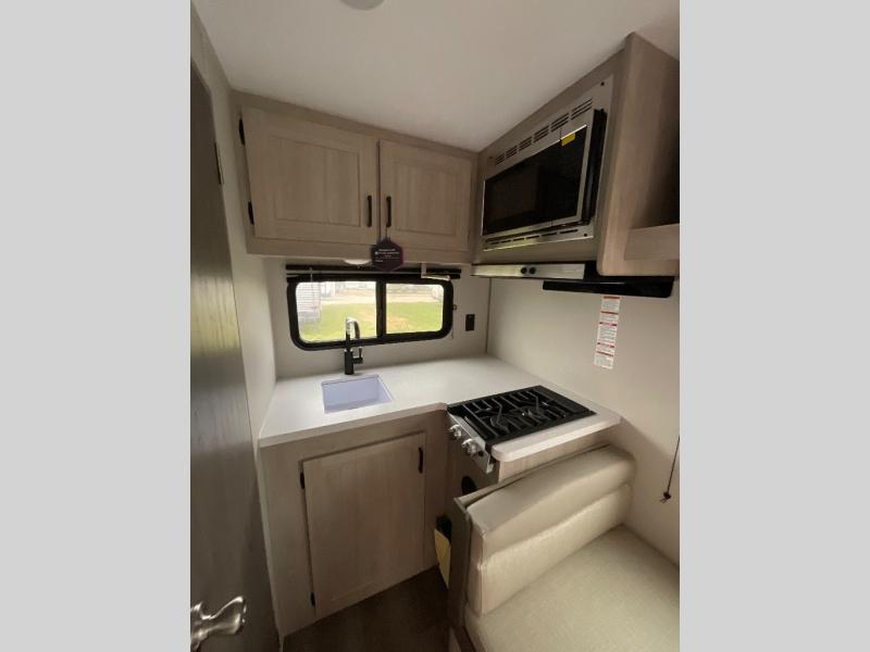 Lightweight camping is easier than you think with this travel trailer in tow! The front 54" x 74" bed will provide a great night's rest each night. There is a handy shelf above the front bed for your belongings plus overhead storage in the kitchen area. A private bath includes a 24" x 32" shower and a toilet with a mirror behind it so you can freshen up each day. You'll also find a two burner cooktop and microwave oven to make meals each day plus a 3.3 cu. ft. 12V refrigerator for food storage!