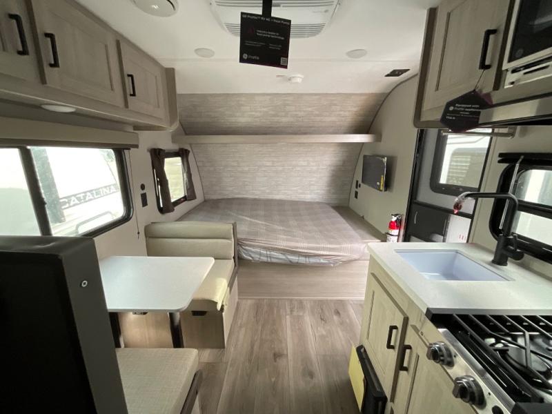 With any Catalina Summit Series 7' by Coachmen RV, you can create an easier adventure with the versatility and simplicity of the shorter lengths and lighter weights! Each includes a premium exterior graphics package, a smooth HD aluminum radius front, and EZ lube axles with leaf spring suspension. The exterior offers a heavy duty standard tongue jack, a diamond plate rock guard to protect against road debris, exterior RG-6 coax cabling and satellite prep, rear view camera prep, and flush mount baggage doors with radius corners for your outdoor gear. Inside, you will enjoy a premium JBL interior speaker, USB charging ports, seamless Thermofoil countertops throughout, a deep basin farm style sink for easy cleanup, and GE kitchen appliances. It's time to choose an affordable and maneuverable single axle trailer today!