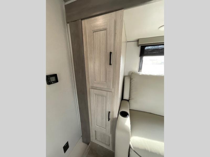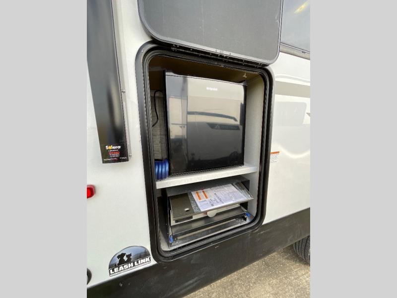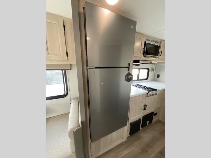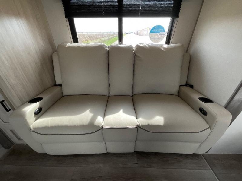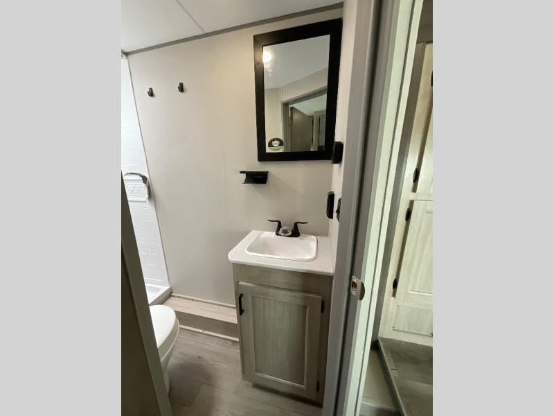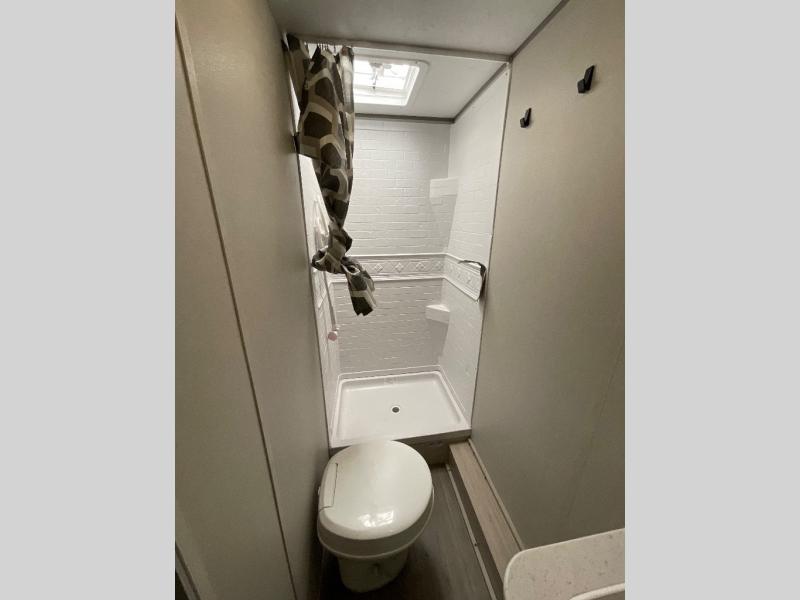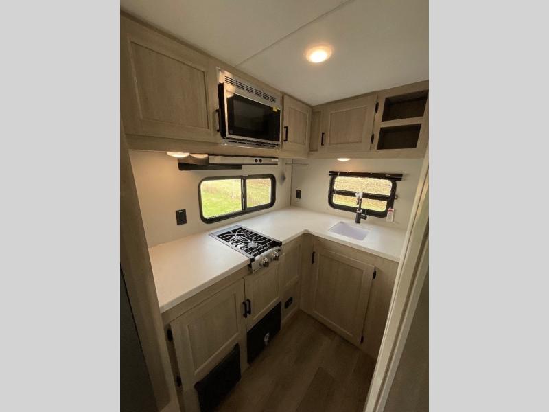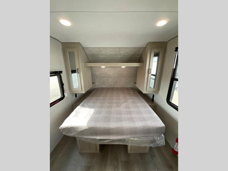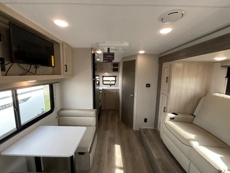 You will love how conventional this travel trailer is! If you want to travel for just a weekend or even more, you won't have to worry since you have all the amenities you need. This model has a queen bed with dual end wardrobes for some extra storage so you can neatly store your clothes. There is also a slide with theater seating, and a booth dinette to enjoy your favorite breakfast. A rear corner kitchen features everything you need to cook indoors, or you can head outside to use the outdoor Camper Kitchen with mini fridge and griddle. A rear corner bath features a 24" x 32" shower, toilet and sink. Outside, you'll find a 17' power awning with multicolor LED lights and exterior storage for camp gear.