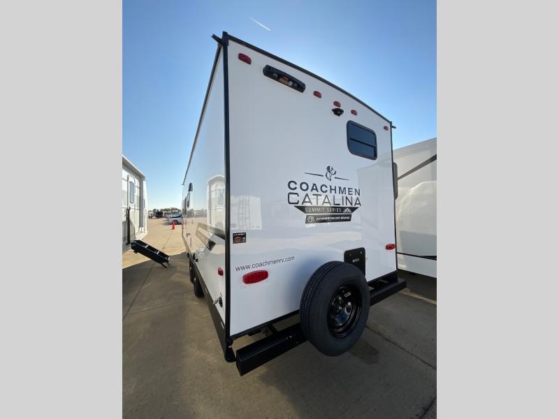 With any Catalina Summit Series 8 by Coachmen you will enjoy an affordable travel trailer packed with at-home comforts! The solid construction includes a Norco electromagnetic powder coated chassis, a seamless Alpha roof membrane, and full length frame outriggers for maximum support and durability. EZ lube axles with leaf spring suspension and self-adjusting brakes provide smooth towing from home to campground, and the premium exterior graphics package is sure to turn heads as you travel down the highway. You will love the features included, such as a JBL Aura Cube media center, magnetic baggage door latches, 4,000 lumen interior touch lighting, and the list goes on!
