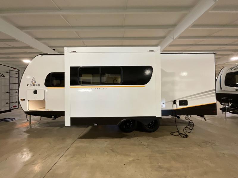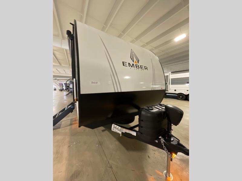 With any E-Series travel trailer by Ember RV you will enjoy a lightweight RV with all the "Essentials" needed for memorable trips in the great outdoors! Each model is constructed with durable laminated Azdel Onboard composite walls, a full walkable roof with a one-piece Tufflex PVC roofing material, and a gel-coated fiberglass exterior. The Dexter axles with E-Z lube hubs and forward self-adjusting electric brakes plus Goodyear Endurance tires will provide a smooth tow from home to campground. You will appreciate the Congoleum DiamondFlor "carpetless" interior that is easy to clean, and the hardwood framed cabinet doors will create a more residential feel. Each model includes a tankless on-demand water heater for endless hot showers and an 18,000 BTU Max Cool "Whisper Quiet" A/C, which is the largest single A/C in its class! If you're looking for off-grid capabilities, you might want to choose the optional Off-Grid Solar Package with 400 total watts of solar panels, a 2,000W Pure Sine wave inverter, and a Victron MPPT solar controller!