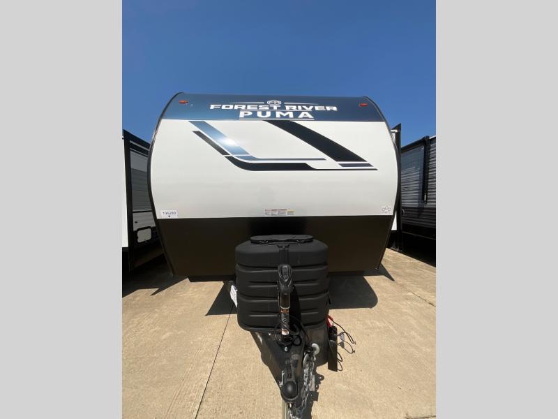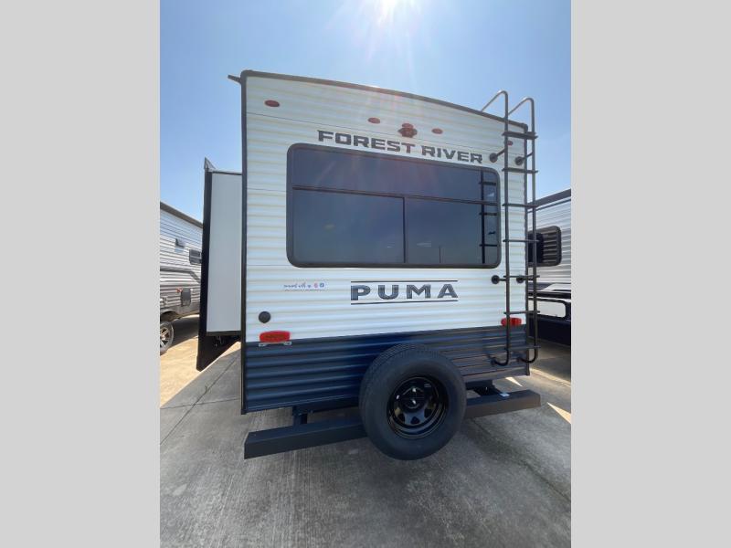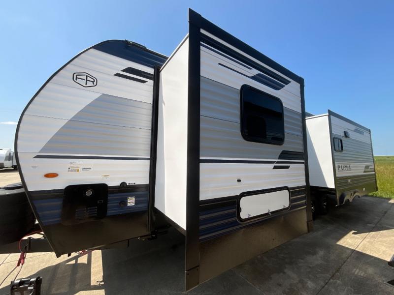 If you're looking for family-fun adventures then you need one of these Palomino Puma fifth wheels or travel trailers! They are built rugged, easy to tow, and jam packed with features. The Darco wrapped underbelly will protect your units vitals and the AlphaPly roofing membrane covers it. They also have new aluminum wheels and a powder coated steel I-beam frame. Inside, the Congoleum linoleum will be easy to keep clean, and the night roller shades will provide privacy when it's time to turn in. You'll also enjoy an electric awning with an LED light strip plus an AM/FM/Bluetooth stereo and two outside speakers to keep the party going!