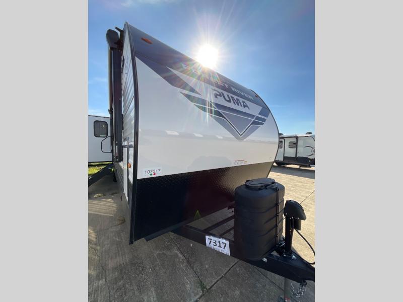 If you're looking for family-fun adventures then you need one of these Palomino Puma fifth wheels or travel trailers! They are built rugged, easy to tow, and jam packed with features. The Darco wrapped underbelly will protect your units vitals and the AlphaPly roofing membrane covers it. They also have new aluminum wheels and a powder coated steel I-beam frame. Inside, the Congoleum linoleum will be easy to keep clean, and the night roller shades will provide privacy when it's time to turn in. You'll also enjoy an electric awning with an LED light strip plus an AM/FM/Bluetooth stereo and two outside speakers to keep the party going!