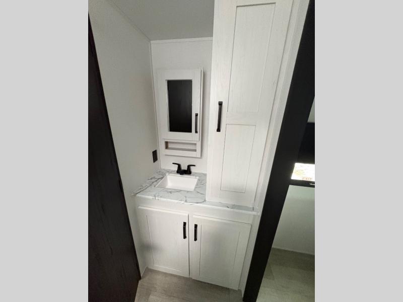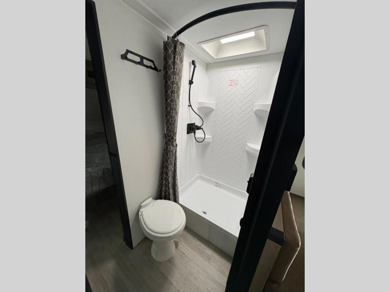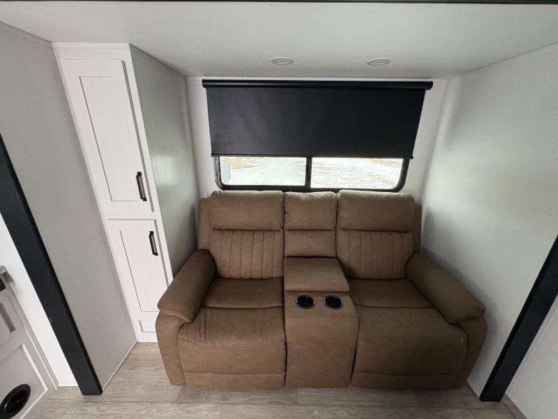 Each Puma Tracks travel trailer by Forest River is constructed with a fully enclosed/heated underbelly for added protection against the elements, plus a fully laminated roof and rear wall for durability. The slam latch baggage doors with magnets will make it easier than ever to pack up your camp gear, and the power awning with LED lights will provide shade during the day and inviting ambiance at night. Head inside to enjoy the roller shades, smoked glass kitchen cabinet doors, stainless-steel sink, and LED lights to keep your space well lit. Some of the available options include a bedroom A/C, a Wi-Fi booster, heated holding tanks, and more!
