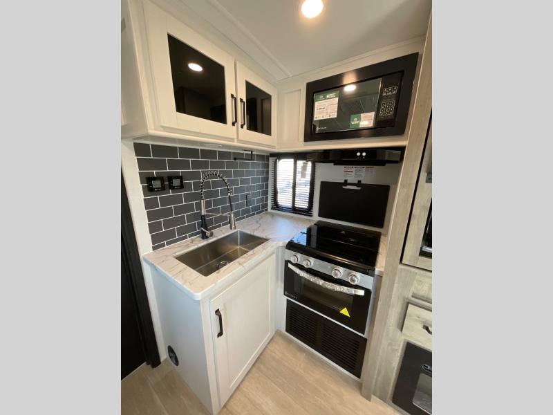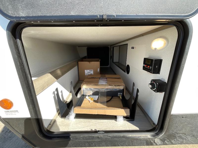 Each Puma Tracks travel trailer by Forest River is constructed with a fully enclosed/heated underbelly for added protection against the elements, plus a fully laminated roof and rear wall for durability. The slam latch baggage doors with magnets will make it easier than ever to pack up your camp gear, and the power awning with LED lights will provide shade during the day and inviting ambiance at night. Head inside to enjoy the roller shades, smoked glass kitchen cabinet doors, stainless-steel sink, and LED lights to keep your space well lit. Some of the available options include a bedroom A/C, a Wi-Fi booster, heated holding tanks, and more!