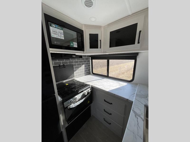 Each Puma Tracks travel trailer by Forest River is constructed with a fully enclosed/heated underbelly for added protection against the elements, plus a fully laminated roof and rear wall for durability. The slam latch baggage doors with magnets will make it easier than ever to pack up your camp gear, and the power awning with LED lights will provide shade during the day and inviting ambiance at night. Head inside to enjoy the roller shades, smoked glass kitchen cabinet doors, stainless-steel sink, and LED lights to keep your space well lit. Some of the available options include a bedroom A/C, a Wi-Fi booster, heated holding tanks, and more!