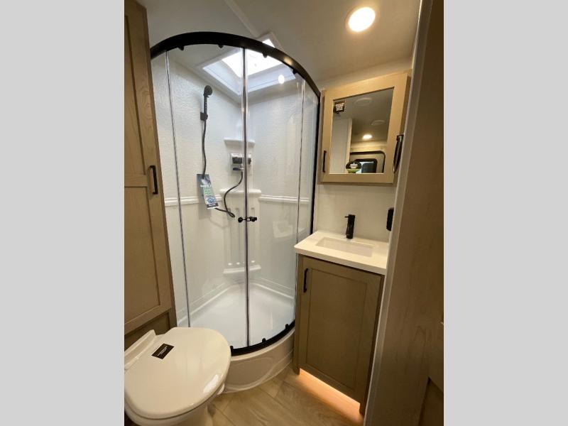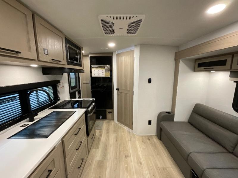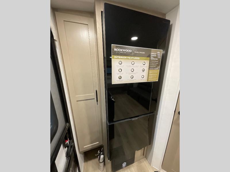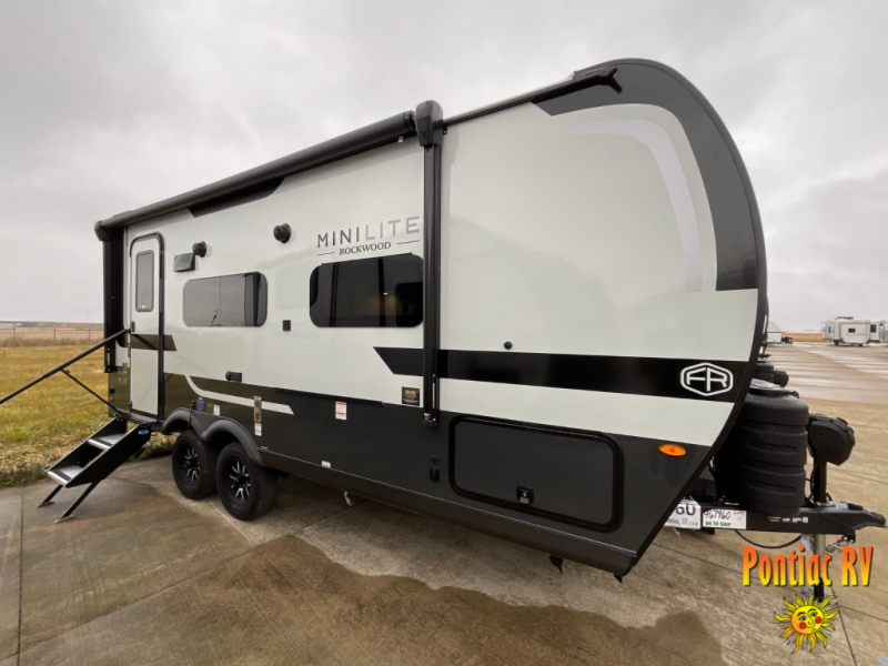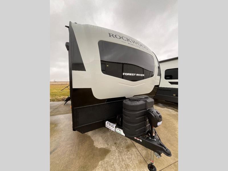 Each Rockwood Mini Lite travel trailer by Forest River is constructed with a fully laminated one-piece walkable roof, sleek frameless windows, and a six-sided full aluminum frame for strength and durability. The 12V thermostatically controlled heated tanks, plus radiant foil in the underbelly will allow you to camp well into the colder months, and the 200W roof solar panel will be perfect for a little off-gridding. Each model includes solid surface kitchen countertops, hidden hinge cabinet doors, roller shades, plus many more interior features. Having an AIR 360+ omnidirectional antenna with WiFi prep on board gives you the option to get some work done if it's needed, and the power tongue jack provides hassle-free set up, so you can enjoy more time relaxing!