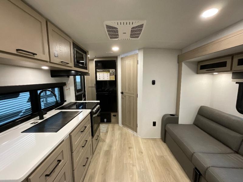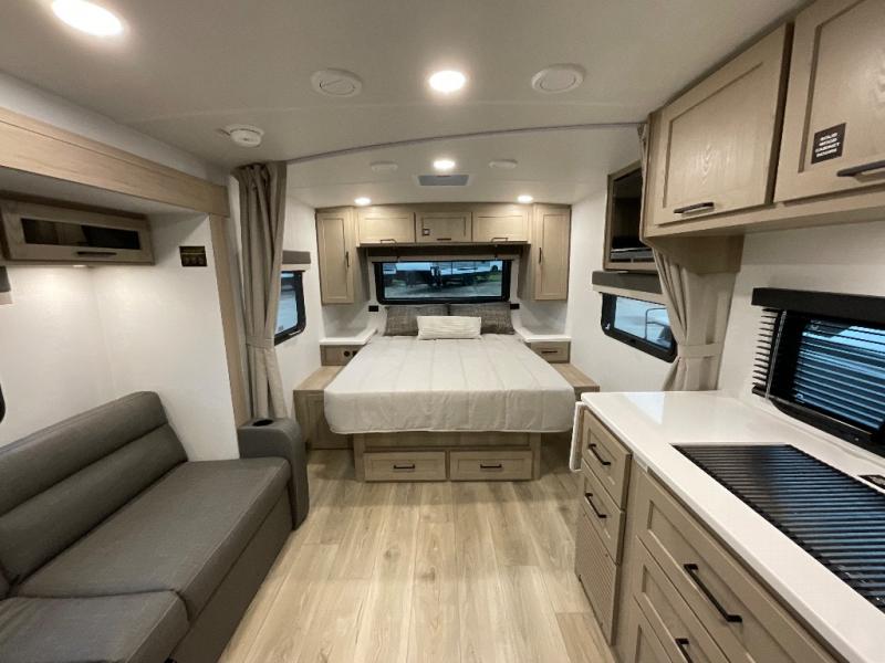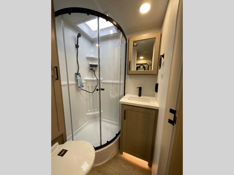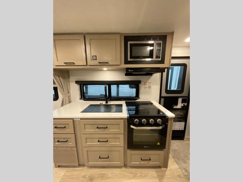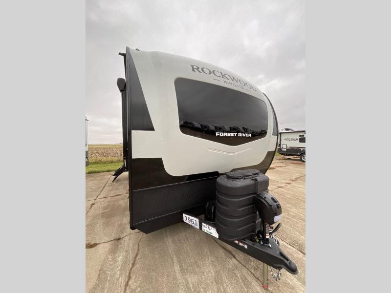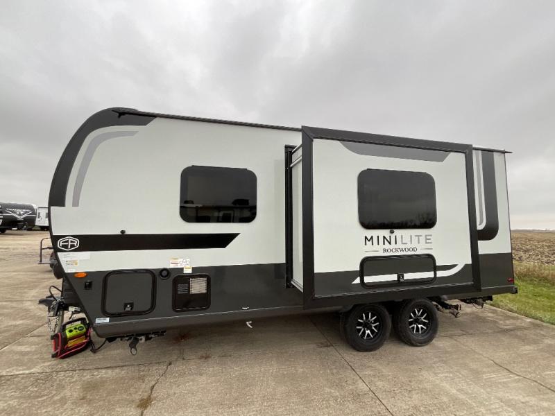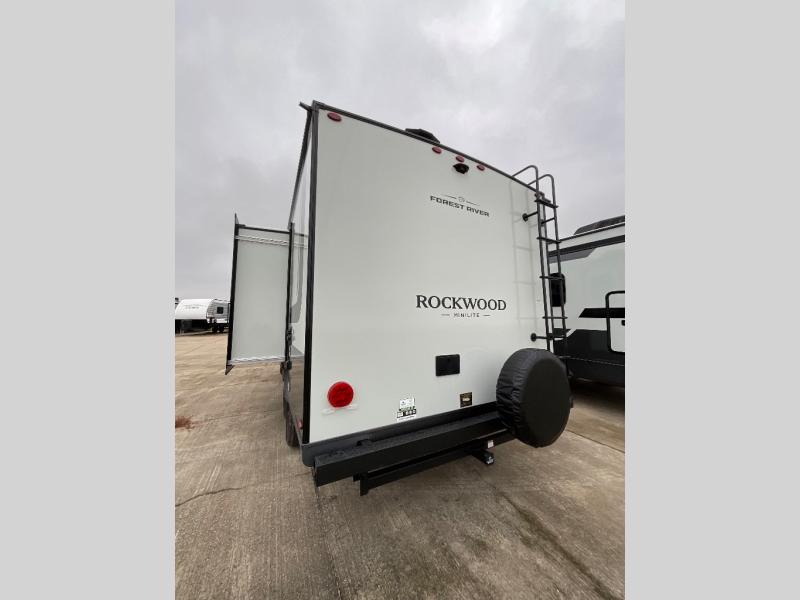 Each Rockwood Mini Lite travel trailer by Forest River is constructed with a fully laminated one-piece walkable roof, sleek frameless windows, and a six-sided full aluminum frame for strength and durability. The 12V thermostatically controlled heated tanks, plus radiant foil in the underbelly will allow you to camp well into the colder months, and the 200W roof solar panel will be perfect for a little off-gridding. Each model includes solid surface kitchen countertops, hidden hinge cabinet doors, roller shades, plus many more interior features. Having an AIR 360+ omnidirectional antenna with WiFi prep on board gives you the option to get some work done if it's needed, and the power tongue jack provides hassle-free set up, so you can enjoy more time relaxing!