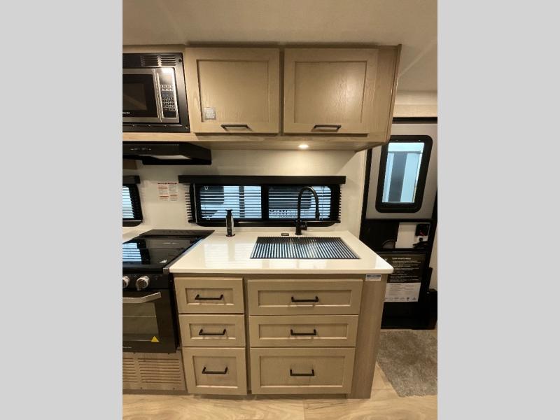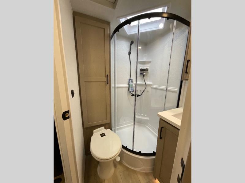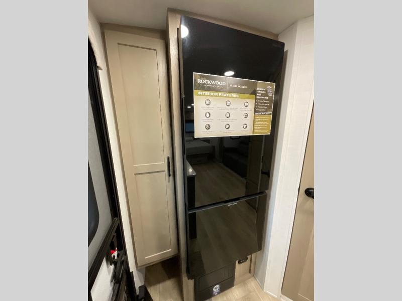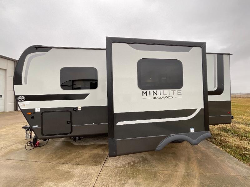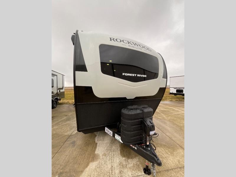 Each Rockwood Mini Lite travel trailer by Forest River is constructed with a fully laminated one-piece walkable roof, sleek frameless windows, and a six-sided full aluminum frame for strength and durability. The 12V thermostatically controlled heated tanks, plus radiant foil in the underbelly will allow you to camp well into the colder months, and the 200W roof solar panel will be perfect for a little off-gridding. Each model includes solid surface kitchen countertops, hidden hinge cabinet doors, roller shades, plus many more interior features. Having an AIR 360+ omnidirectional antenna with WiFi prep on board gives you the option to get some work done if it's needed, and the power tongue jack provides hassle-free set up, so you can enjoy more time relaxing!