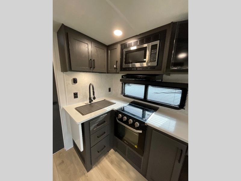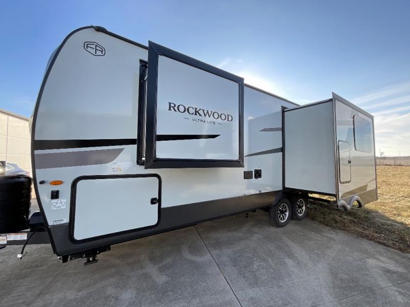 Each Rockwood Ultra Lite travel trailer by Forest River includes superior construction with a high gloss fiberglass cap, aluminum cage construction, and a power awning with LED lighting for a cozy and functional outdoor space. The torsion axle, power tongue jack will make towing smooth and hassle-free, along with the nitrogen filled, Goodyear Endurance tires and the tire pressure monitor system. Interior comforts include kitchen sink with high rise faucet, hidden hinge cabinet doors, and roller shades to name a few. Choose a Rockwood Ultra Lite travel trailer today!