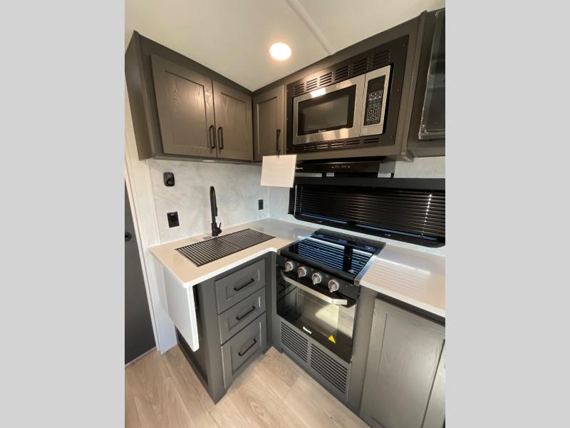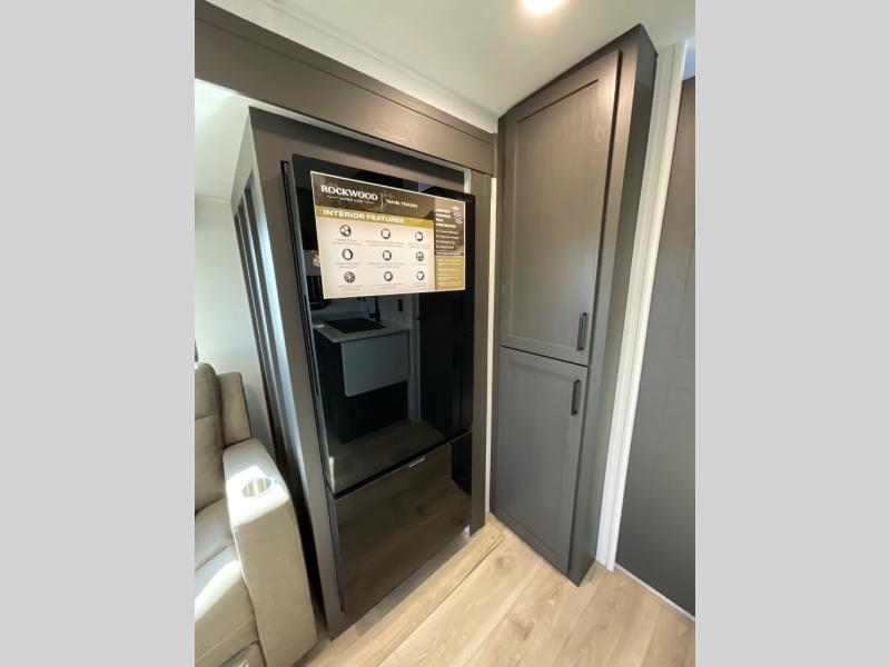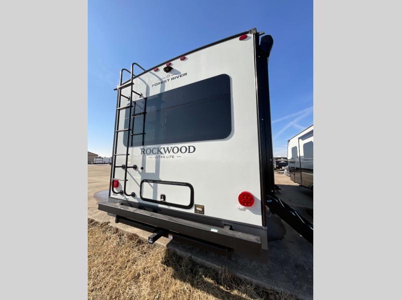 Each Rockwood Ultra Lite travel trailer by Forest River includes superior construction with a high gloss fiberglass cap, aluminum cage construction, and a power awning with LED lighting for a cozy and functional outdoor space. The torsion axle, power tongue jack will make towing smooth and hassle-free, along with the nitrogen filled, Goodyear Endurance tires and the tire pressure monitor system. Interior comforts include kitchen sink with high rise faucet, hidden hinge cabinet doors, and roller shades to name a few. Choose a Rockwood Ultra Lite travel trailer today!