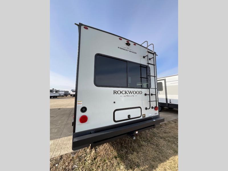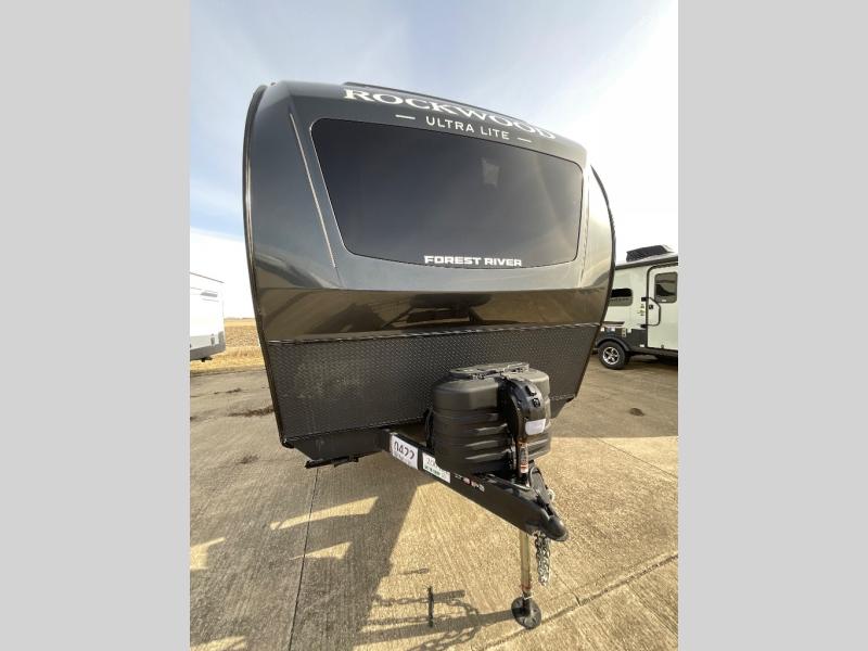 Each Rockwood Ultra Lite travel trailer by Forest River includes superior construction with a high gloss fiberglass cap, aluminum cage construction, and a power awning with LED lighting for a cozy and functional outdoor space. The torsion axle, power tongue jack will make towing smooth and hassle-free, along with the nitrogen filled, Goodyear Endurance tires and the tire pressure monitor system. Interior comforts include kitchen sink with high rise faucet, hidden hinge cabinet doors, and roller shades to name a few. Choose a Rockwood Ultra Lite travel trailer today!
