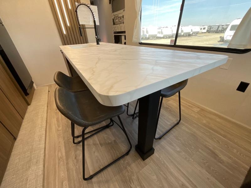 This Wildwood travel trailer is perfect for your family looking for a new adventure. You will enjoy the rear kitchen that includes a refrigerator and cooktop. The Versa-Lounge will provide comfortable seating and sleeping space, and the Versa Flex table gives you a space to dine and work if needed. This unit also includes two lounge chairs, so you'll feel right at home! You'll love the full bath in this unit, and the custom king bed with Versa-Tilt in the private bedroom is perfect for a good night's rest.