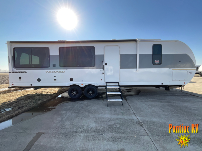 The Wildwood travel trailers are packed with hassle-free camping amenities! There are a variety of floorplans to choose from so you can find the layout that best fits your needs. The heated and enclosed Accessibelly will help protect against the elements and debris during transport, and the exterior retro/metal redesign is sure to be eye-catching! There are stylish roller shades inside, along with updated backsplash, elegant curtain rods and curtains, plus many more interior comforts! Choose a Wildwood travel trailer today for quality and value!