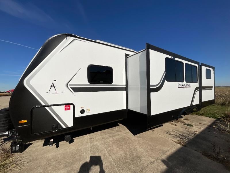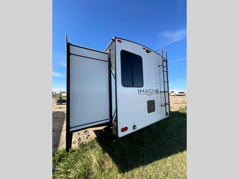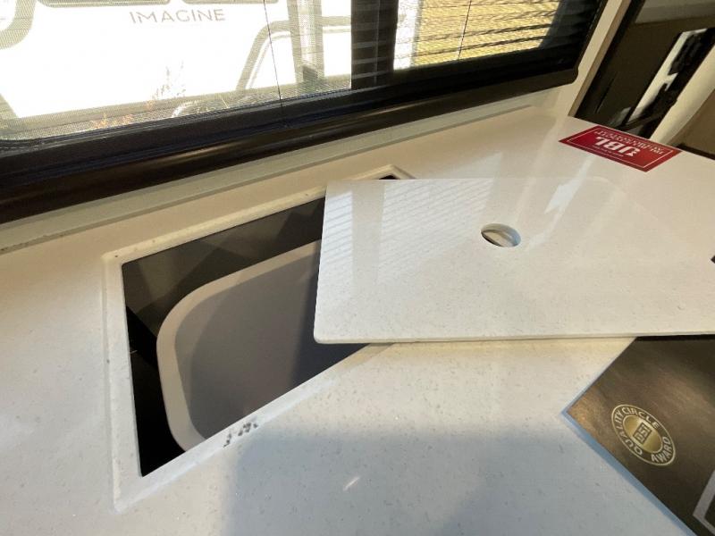 Just imagine leaving the world behind and secluding yourself away with your favorite people in your Grand Design Imagine travel trailer! The Imagine has been designed to enjoy camping and includes a high-capacity furnace, a heated and enclosed underbelly with suspended tanks, a designated heat duct to the subfloor, and a high-density roof insulation with attic vent. You'll have a large panoramic window to let natural lighting in and an adjustable Power Awning with LED Lights for those night gatherings. The exclusive drop-frame pass-through storage compartment is going to allow you to bring along lots of equipment, and the universal docking station is an all-in-one location for utilities and hook-ups. You'll also have oversized tank capacities so that you can fill and empty your tanks less often.