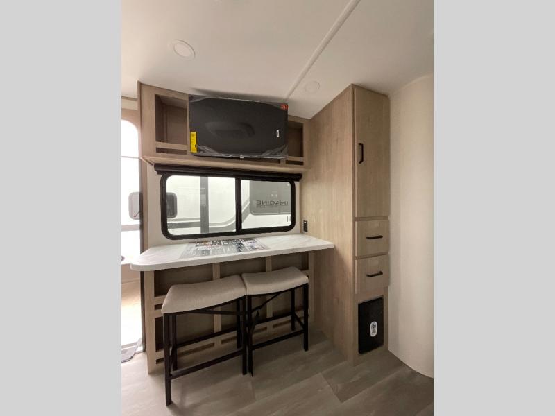 Aim for new destinations in one of these Grand Design Imagine AIM travel trailers! They are constructed to a superior standard with the 4-Seasons Protection Package that features a heated and enclosed underbelly with suspended tanks, a moisture barrier floor enclosure, a double insulated roof and front wall, and more. There is backup camera prep outside, along with a universal docking station, and a power tongue jack. You are sure to feel at home with residential cabinetry, premium window treatments, residential countertops, and a spacious walk-in shower to name a few comforts. The on-demand tankless water heater is a feature you won't want to camp without and the hi-definition LED TV will ensure you'll never go bored on rainy days. Each model also comes with four AIM packages; the Peace of Mind Package, The Ultimate Power Package, The 4-Season Protection Package, and the Solar Package!