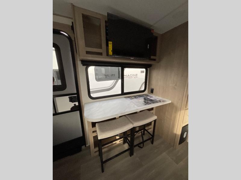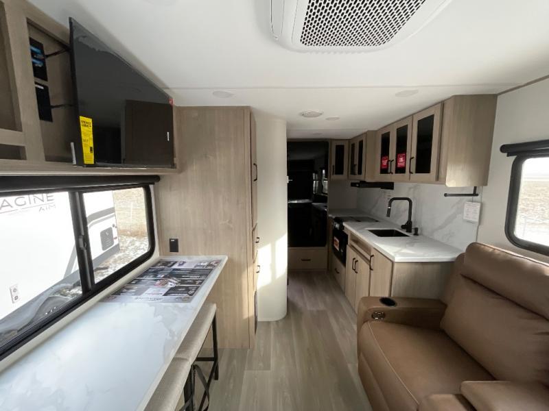 Aim for new destinations in one of these Grand Design Imagine AIM travel trailers! They are constructed to a superior standard with the 4-Seasons Protection Package that features a heated and enclosed underbelly with suspended tanks, a moisture barrier floor enclosure, a double insulated roof and front wall, and more. There is backup camera prep outside, along with a universal docking station, and a power tongue jack. You are sure to feel at home with residential cabinetry, premium window treatments, residential countertops, and a spacious walk-in shower to name a few comforts. The on-demand tankless water heater is a feature you won't want to camp without and the hi-definition LED TV will ensure you'll never go bored on rainy days. Each model also comes with four AIM packages; the Peace of Mind Package, The Ultimate Power Package, The 4-Season Protection Package, and the Solar Package!