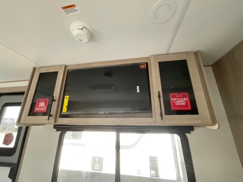 This Imagine XLS travel trailer has theater seating and a booth dinette that you can use any time you need a little break from the outdoors. If you want to come in and grab a coffee, put together a puzzle, or work on your itinerary for the week, just put up your feet and relax. You could even switch on the LED HDTV if you want a little entertainment. The front queen-size bed has a privacy curtain that you can draw to create a semi-private bedroom, and in the back of the trailer you will find the rest of your amenities, like the kitchen and the bathroom. The large slide makes it easy to enjoy spending your time indoors, but if you do want to get back outside, you can sit underneath the 18' electric awning for some shade.