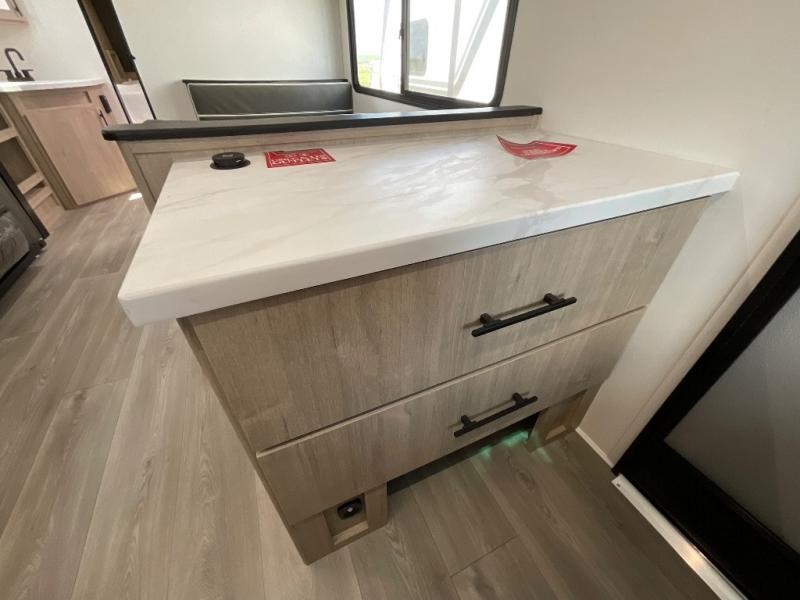 Let your imagination run wild with the possibilities that the Grand Design Imagine XLS travel trailer can provide! The Imagine XLS has been built with oversized tank capacities, an extra-large 2" fresh water drain valve, a ducted A/C system, a power tongue jack, and a heated and enclosed underbelly with suspended tanks. There is a designated heat duct to the subfloor and a residential ductless heating system throughout. For outdoor adventures, the electric awning with LED lights will enable you to stay protected, and the Tuff-Ply pass-thru flooring will withstand your many adventures. You will also love the XLS Solar Package that comes with a 200W roof mounted solar panel, a 40 Amp charge controller, a 12V 10 cu. ft. refrigerator, and roof mounted quick connect plugs!